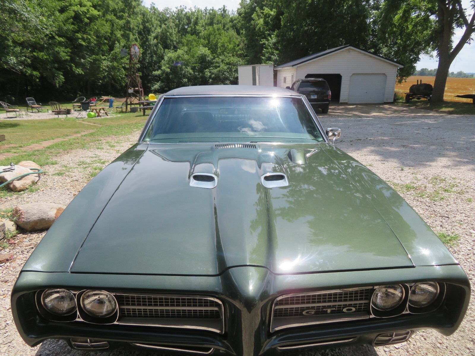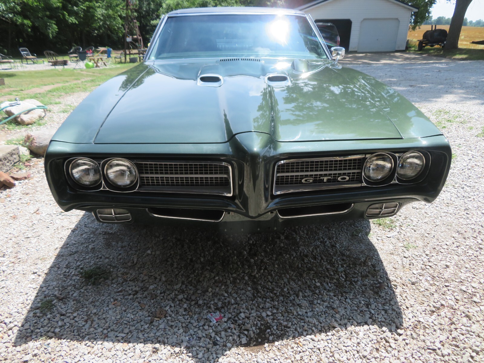 THIS IS A 1969 GTO PLEASE CLICK ON VIDEO ABOVE TO SEE DETAILED WALK AROUND OF THE CAR IN THE VIDEO IT LOOKS LIKE THERES SPECS HERE IN THERE ON THE PAINT ITS DUST THERE IS NO SPOTS ON CAR THE CAR OR DIRT IN PAINT THE PAINT IS A 9 OUT OF 10 LAZER STRAIGHT NO DENTS POLY GREEN IS THE COLOR THAT IS ORIGINAL COLOR THIS IS A ALL ORIGINAL METAL CAR NO RUST EVER I HAVE PHS BUILD SHEET CLEAR TITLE PROTECTO PLATE THE CAR WAS STORED IN CLIMATE CONTROLLED SPACE SINCE THE RESTO 6 YEARS AGO BARELY DRIVEN IT HAS TACH ON HOOD EVERYTHING WORKS ON THE CAR REAR DEFROST WORKS HEATER WORKS POWER STEERING AND POWER BRAKES THE CAR DRIVES PERFECT I HAVE LOTS MANUALS AND EXTRA PARTS THAT GO WITH THE CAR THIS A CAR YOU CAN GET IN AND DRIVE ANYWHERE YOU COULD NOT BUILD THIS CAR FOR MY ASKING PRICE IT WAS APPARAISED FOR BETWEEN 60K AND 70K I'M NOT ASKING THAT FOR THE CAR MY RESERVE IS VERY REASONABLE INTERIOR IS NEAR PERFECT UNDERCARRIAGE IS SUPER CLEAN TRUNK IS ORIGINAL METAL STILL HAS ORIGINAL JACK AND SPARE THE CAR NEEDS NOTHING UNDER THE HOOD IS SUPER CLEAN VIN IS STAMPED ON ENGINE ALL LIGHTS WORK DOWN TO DOME LIGHT PLEASE CALL OR EMAIL ANYTIME 217 620 8344 THANK YOU