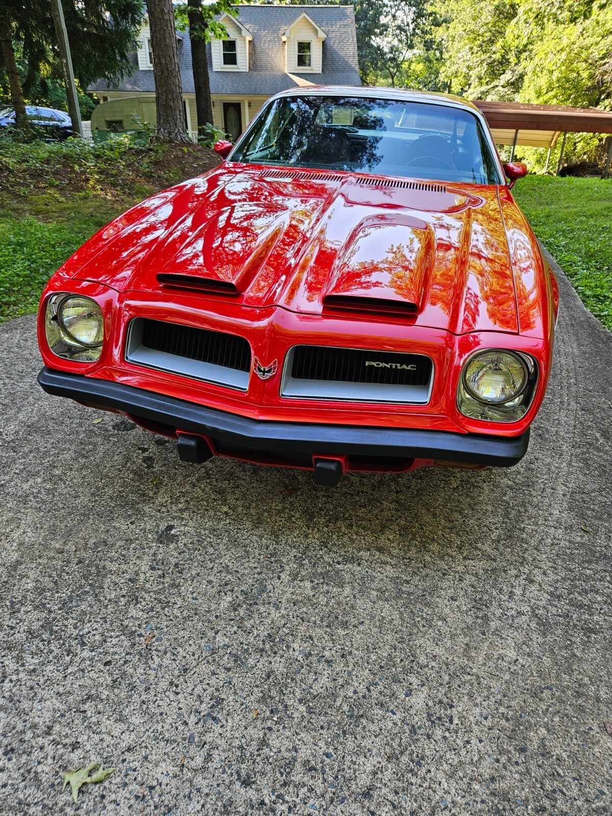 Selling at No Reserve! BID TO BUY! priced to sell! look at comparables. a beautifully restored 1974 firebird formula 455 tribute. Recently restored with expensive new paint job, all jambs done etc. Car was sanded buffed smooth and slick! done correctly with everything removed and replaced. All new weatherstripping, side glass, windshield, chrome,... restored rally wheels 15". complete new interior. Seats, door panels, console, headliner, visors, rear panels, door sill plates, carpet. Does have mint original dash, with original am/fm and console 8 track. Does have modern sound system in glove box.Engine was rebuilt with nice cam and 4 barrell(numbers matching 350) big us made aluminum radiator.has new 200r overdrive trans swap, with switched lockup converter. New 342 gears in rear. New flowmaster exhaust, springs, shocks, suspension. Have original build sheet, always solid virginia car.95,900 original miles. Did come with spoiler and stripe originally. Heat and fan work well on all speeds, a/c compressor comes on, but system needs charging.Have trim rings, just hated to scratch wheels, I like car without them, but to each own preference.There was over $35k invested plus purchase of car. You or representative are welcome to setup appointment to view car before auction ends.$500 PayPal deposit, balence bank wire certified check, will hold till funds clear. Clear nc title in my name.