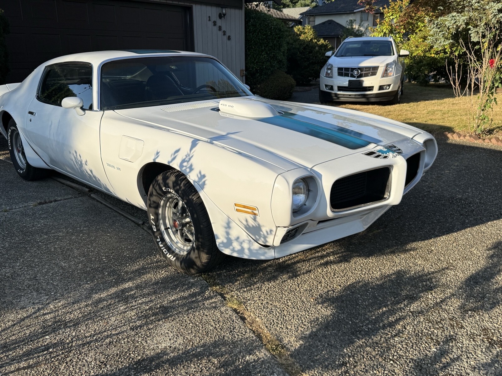 Beautiful 1971 Trans Am Clone .Very strong big block 455 ci moto, 4spd muncie trans. Shaker hood, shoulder belt, TA whee, consol, quick ratio power steerin, power brake, deluxe interior, nice polar white paint with blue stripe. TA gauge package included. Looks and runs great. Can assist in transport 253-335-0532