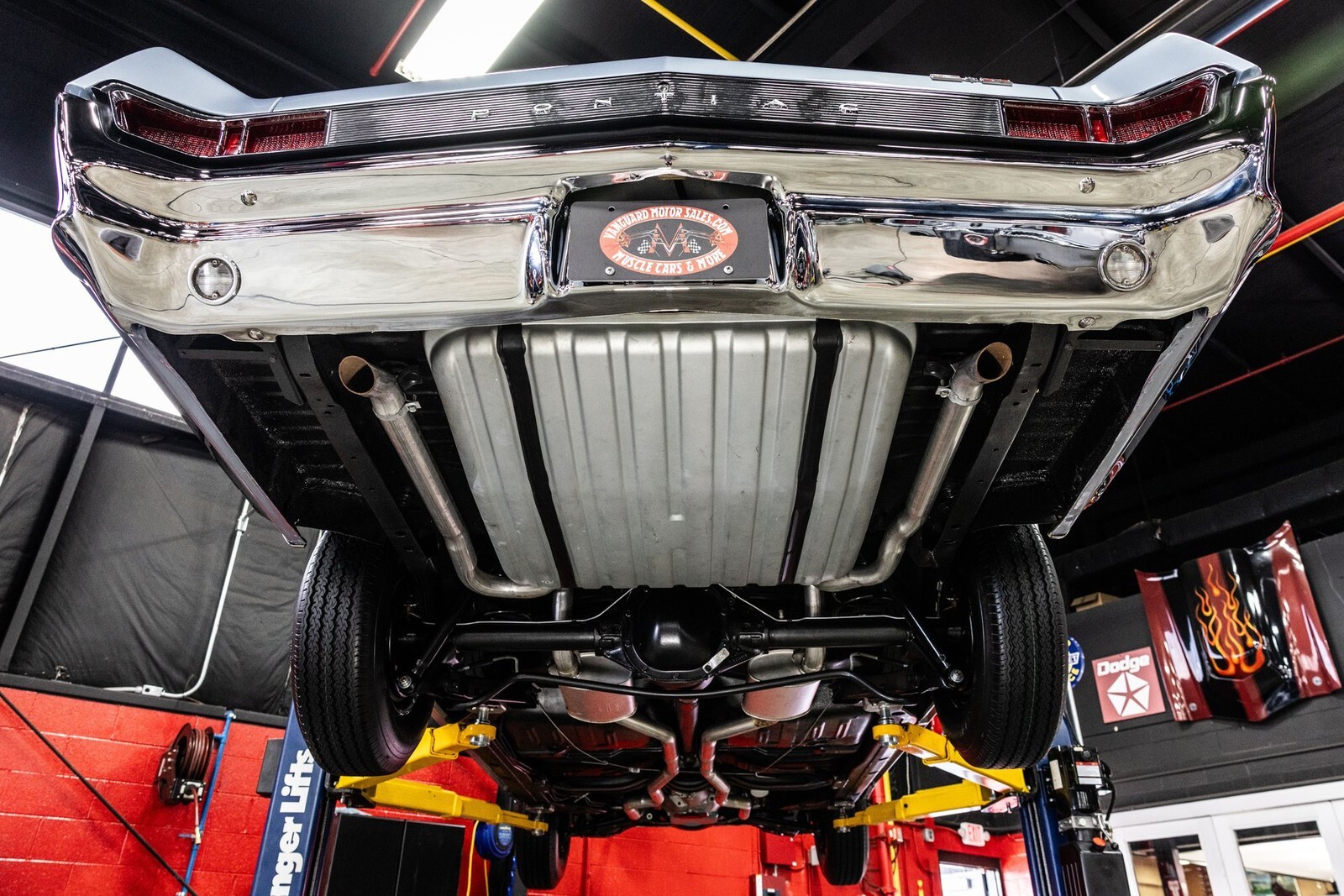 Inside this Catalina is a Fresh Black interior! The interior is accented with Chrome and a new Headliner! Additional features include, Factory Gauges, Muncie Shifter Handle, Front Bucket Seats, Wooden Three Spoke Steering Wheel, Factory Style Radio, Factory Style Heat Controls and Center Console! This Catalina also features a finished trunk with the spare Tire!