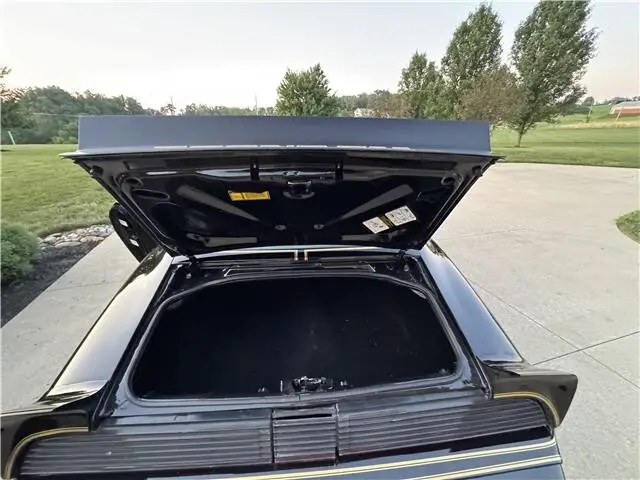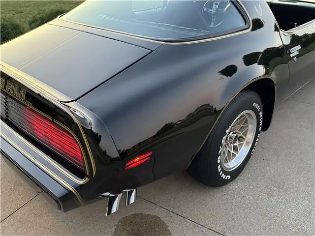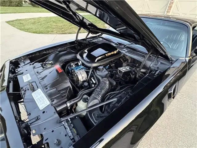 This Trans Am has been meticulously maintained and has a rust free body. It looks amazing in its factory original color, Starlight Black. The paint finish has been polished smooth and glossy. It has the correct gold bird decal and pin stripes and they are in excellent shape. It also features factory T-Tops. It also has new weather stripping and window felts. The taillights are like new. It rides on its original Snow Flake Rally wheels with correct center caps and lug nuts. The wheels are wrapped with a set of Uniroyal steel belted radial tires.