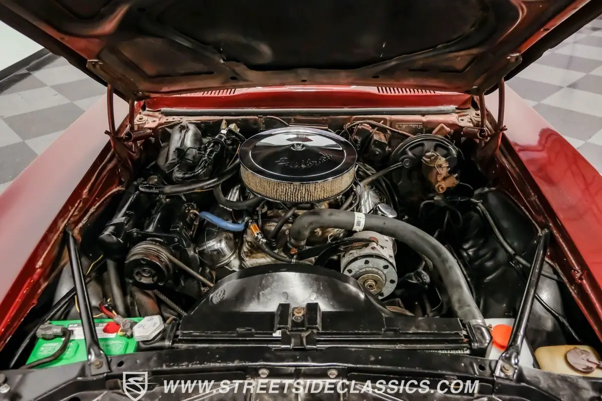 A Pontiac 350 cubic inch V8 is fed by an Edelbrock 4-barrel carb and matching intake. It fires off with help from an Accel HEI distributor and pushes power through a TH350 3-speed automatic transmission. Power front disc brakes handle stopping duties and dual exhaust with H-pipe and aftermarket mufflers gets it out the back. Coil spring front suspension with a sway bar handles the lead, while leaf springs and a 10-bolt rear axle finish out the rear.