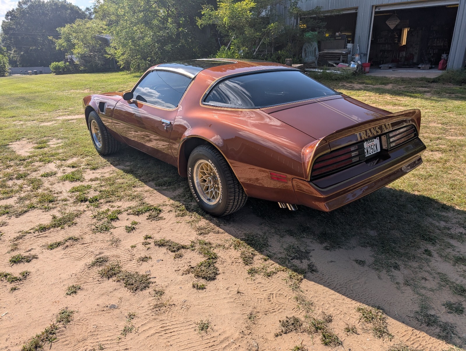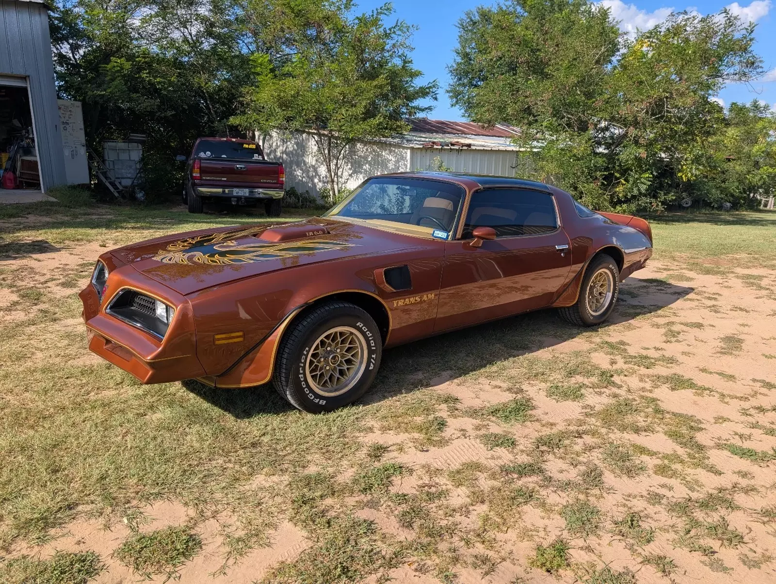 Relisting due to buyer flaked out.This is a very nice 1978 Trans AM,one year only Chesterfield Brown(Copper), original 400 Pontiac (TA 6.6) original 4sp now tremic 5sp,one made to fit car,no hacked floors,3:23 posi,T-tops,power window,power locks,power trunk,rear defogger,tilt,cruise. 400 has been hoped up for more power,heat wrapped headers, mandrill bent exhaust,ra III cam, aluminum intake ECT. Hydrolic clutch, vintage air,ws 6 wheels. Damn near mint original int,Very nice original weather strip. Very straight rust free body,with a high quality repaint,no bubbles or scratches,SE stripes.Very nice original floors with factory primer.Car runs hard,no rattles or squeaks,t tops are tight,no leaks. Cruises highway effortlessly,no overheating. This is a nice ta.Have more pictures and video. $45,000 OBO any questions please call 903-three five2-0147