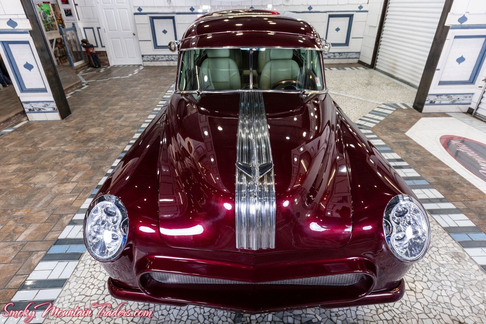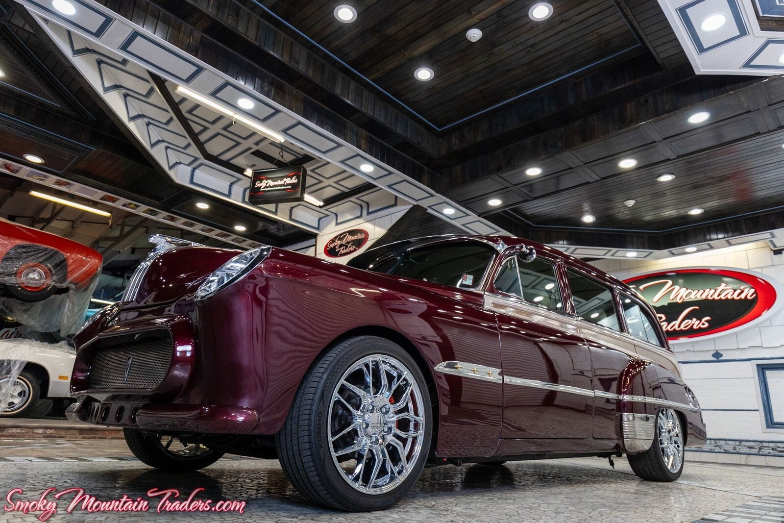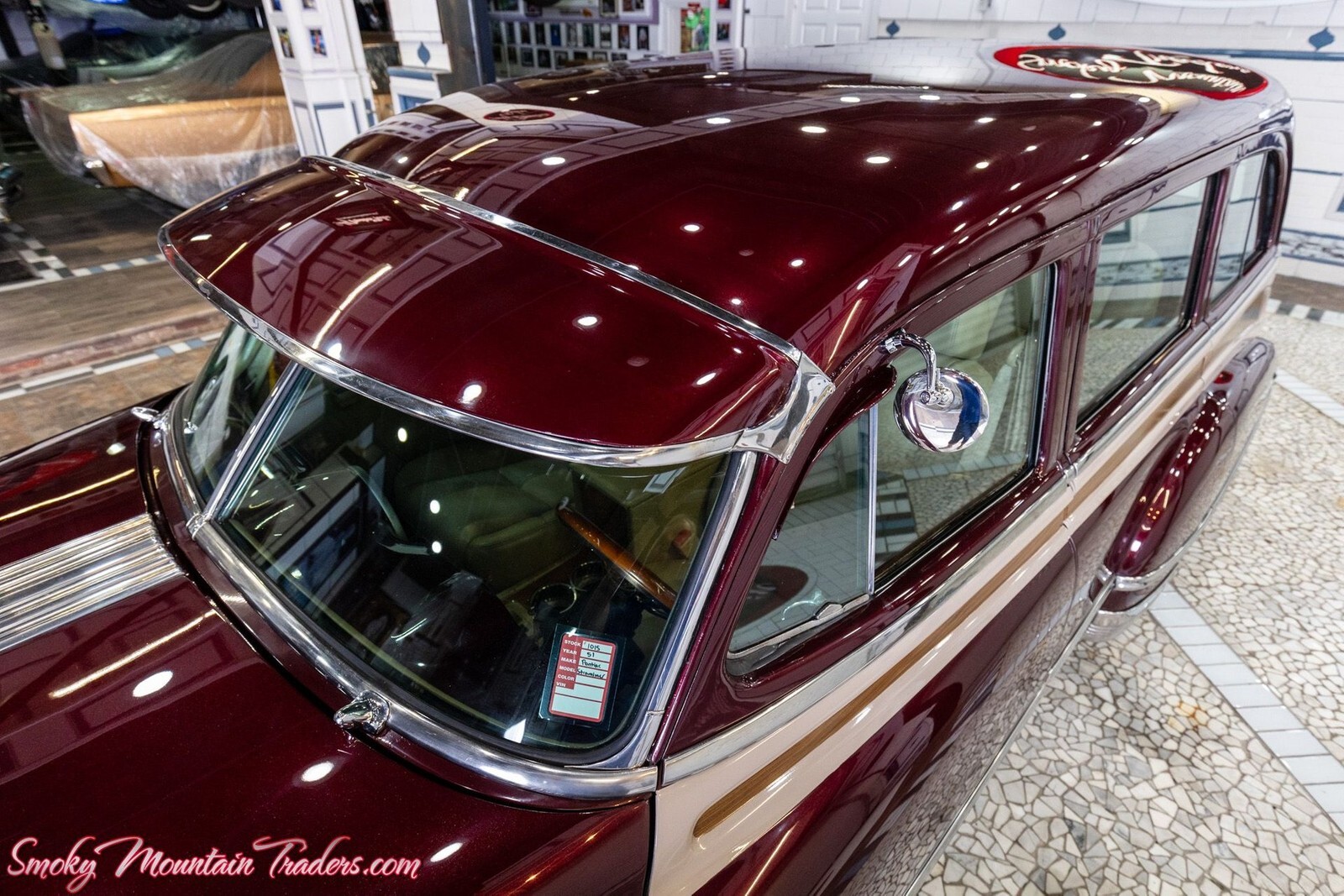 The exterior of this Streamliner has been completely transformed with a head-turning two-tone finish. A rich, deep burgundy metallic base is paired with soft cream side panels, artfully separated by custom woodgrain accents that pay tribute to the classic "woody" wagons of the era. The body has been meticulously smoothed and streamlined, featuring molded front and rear bumpers that flow seamlessly into the bodywork. Shaved door handles with remote enhance the clean profile, while custom LED halo headlights and a smoothed mesh grille give the front end a contemporary yet unmistakably vintage look. Large chrome multi-spoke wheels tuck beautifully under the fenders, giving the wagon a modern stance without compromising its classic charm. Every line and curve reflects hours of precision bodywork, creating a visual masterpiece that captures attention wherever it goes.