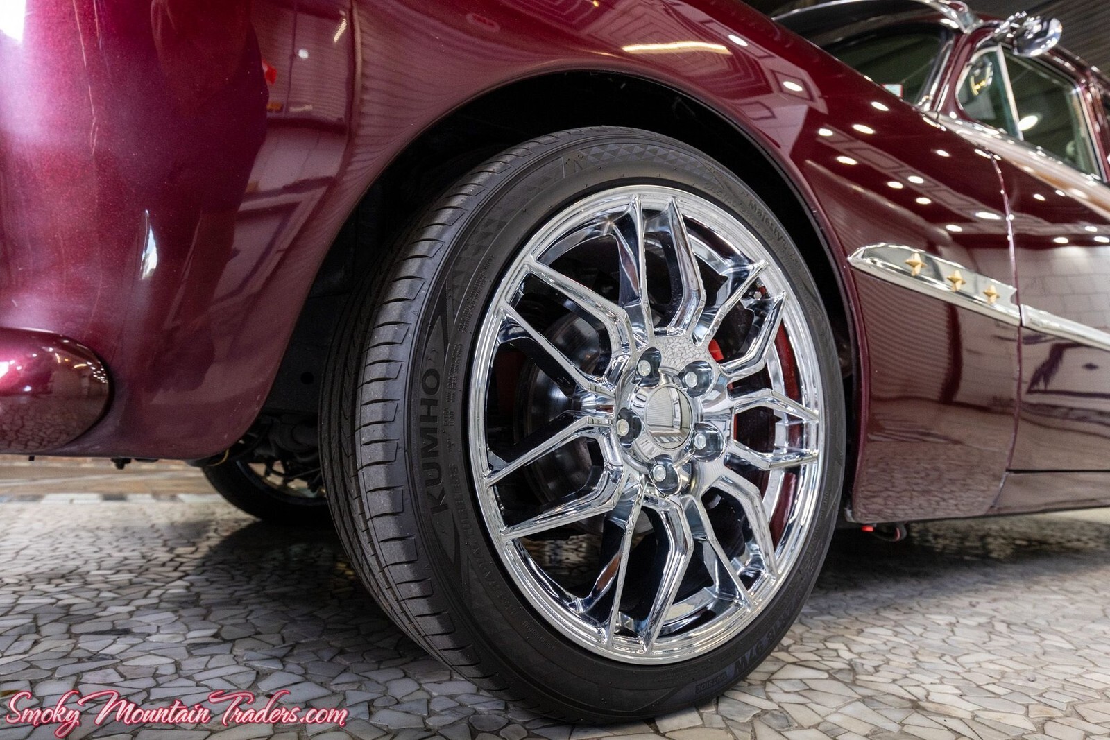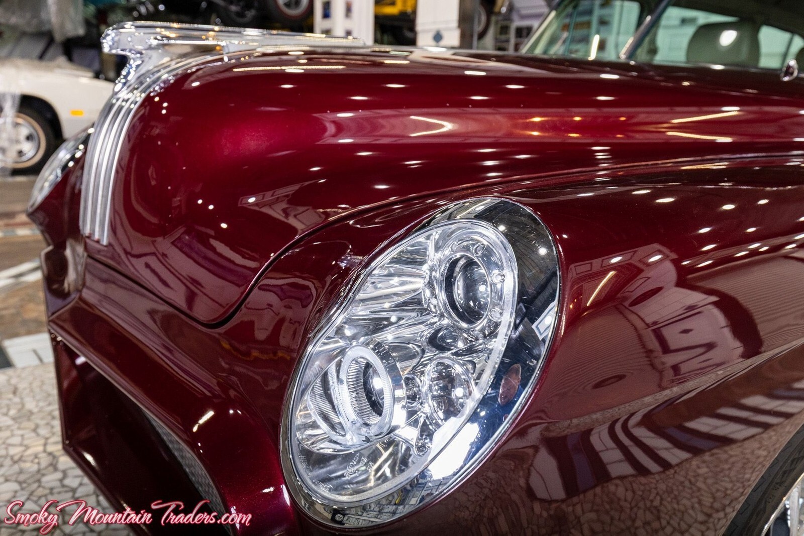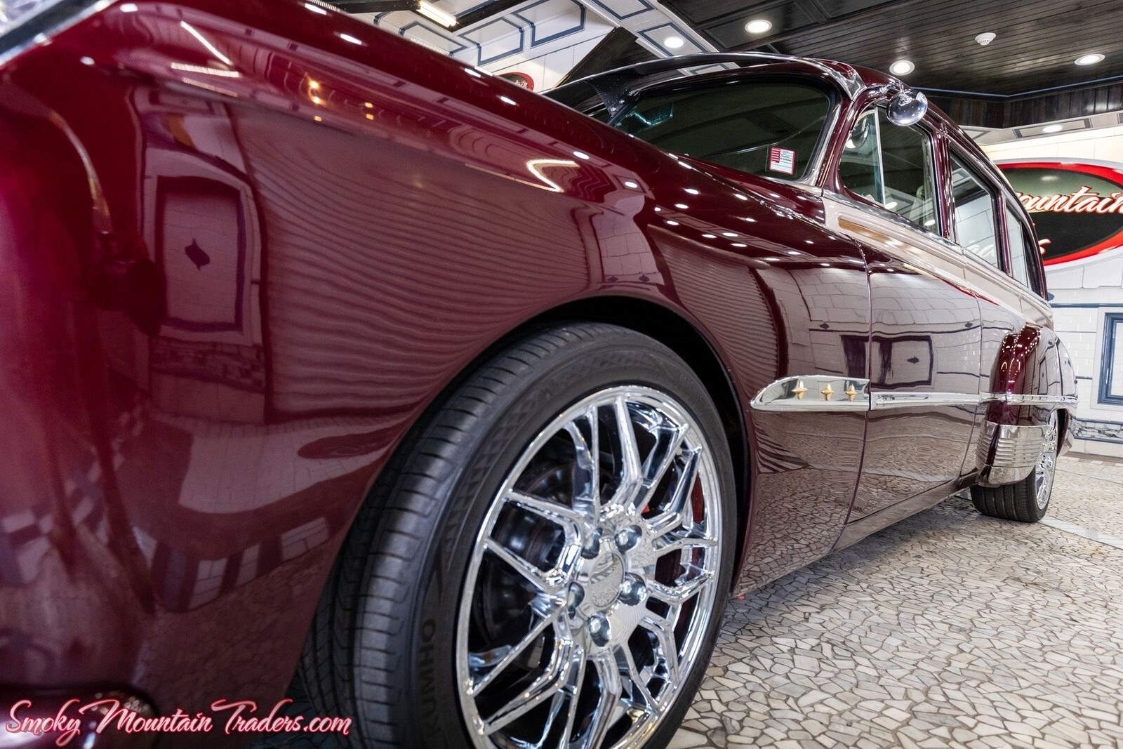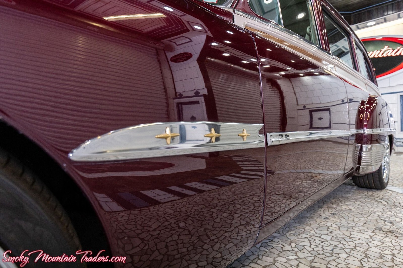 The exterior of this Streamliner has been completely transformed with a head-turning two-tone finish. A rich, deep burgundy metallic base is paired with soft cream side panels, artfully separated by custom woodgrain accents that pay tribute to the classic "woody" wagons of the era. The body has been meticulously smoothed and streamlined, featuring molded front and rear bumpers that flow seamlessly into the bodywork. Shaved door handles with remote enhance the clean profile, while custom LED halo headlights and a smoothed mesh grille give the front end a contemporary yet unmistakably vintage look. Large chrome multi-spoke wheels tuck beautifully under the fenders, giving the wagon a modern stance without compromising its classic charm. Every line and curve reflects hours of precision bodywork, creating a visual masterpiece that captures attention wherever it goes.