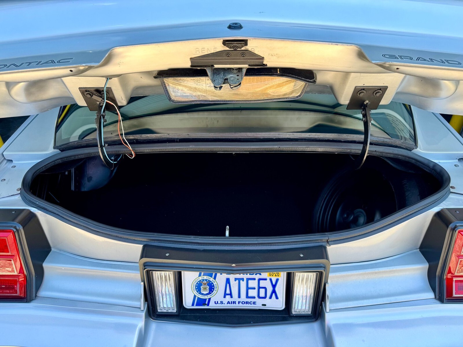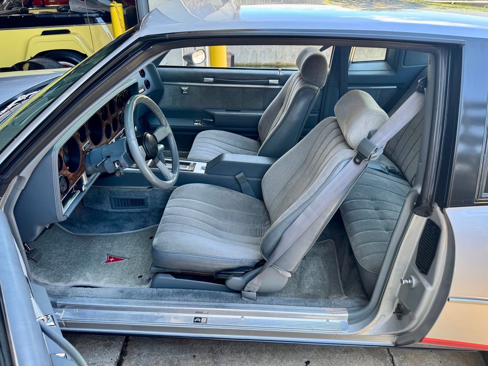 As they all were, this 2+2 time capsule is finished in silver paint with a matching gray interior. Pontiac rally wheels wrapped in BFG Radial TA tires and a rear exiting dual exhaust complete the look. The large rear window and spoiler give this car an unmistakable view from behind and certainly not to be confused with a run of the mill Grand Prix!Under the hood lies a 305CI V8 engine with 4 barrel carburetor mated to a smooth shifting 200R4 4 speed automatic transmission with overdrive. It is well equipped and features power steering, power front disc brakes, power windows, power locks, tilt steering column and cold factory air conditioning!