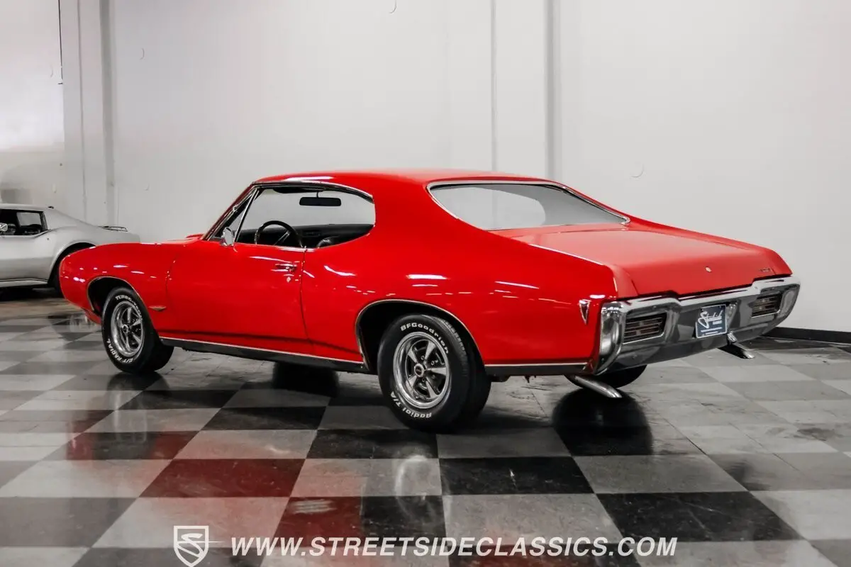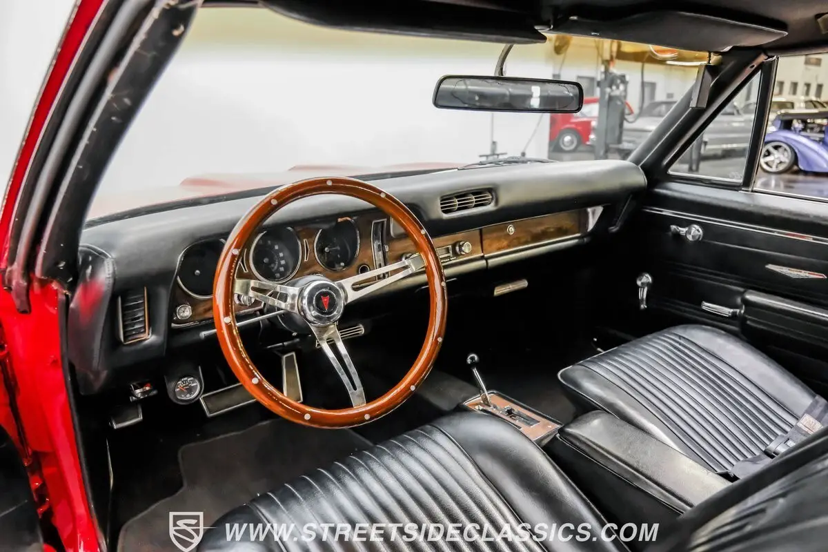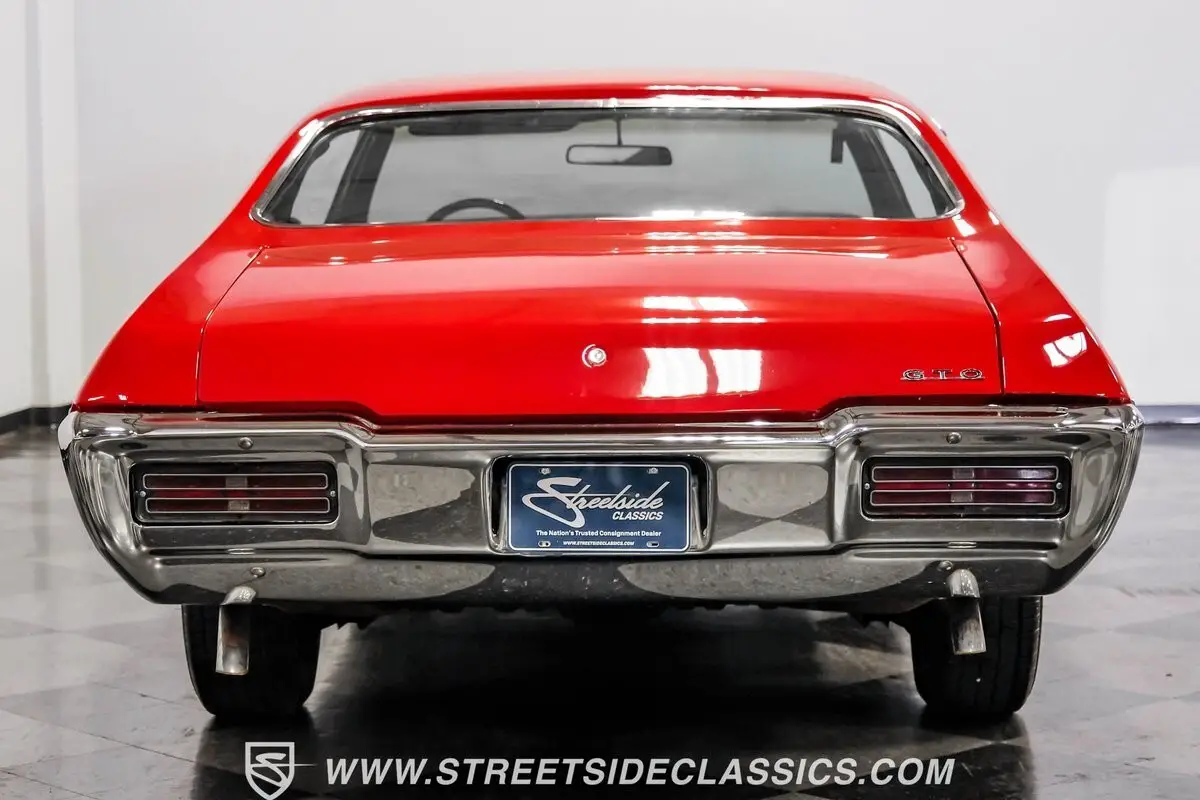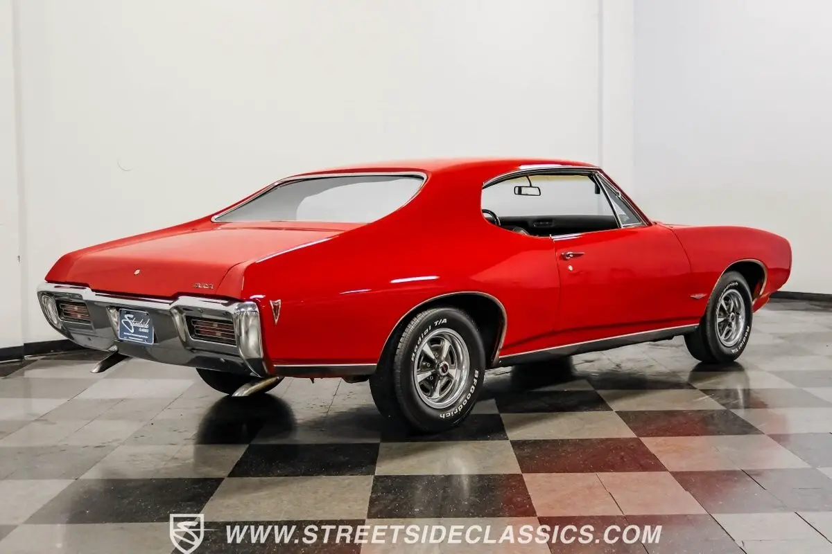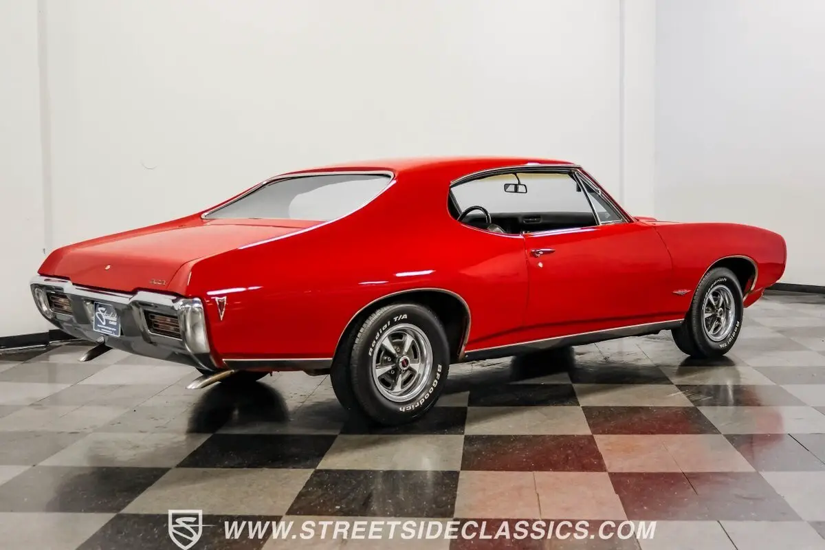 This 1968 Pontiac GTO, all muscle clad in an exciting Red color that seems to stretch into infinity, asserts its dominance with more than just its color. Its distinctive hood, crowned with dual scoops add to its muscle car allure. Mounted on stock 14-inch Pontiac Rally wheels that anchor it firmly to the asphalt, its road presence is undeniable. The car's classic stance is all muscle, with 225/70R14 BF Goodrich Radial T/A tires ensuring that every bit of power is translated directly to the road. This GTO makes an entrance with the unmistakable allure of American muscle.