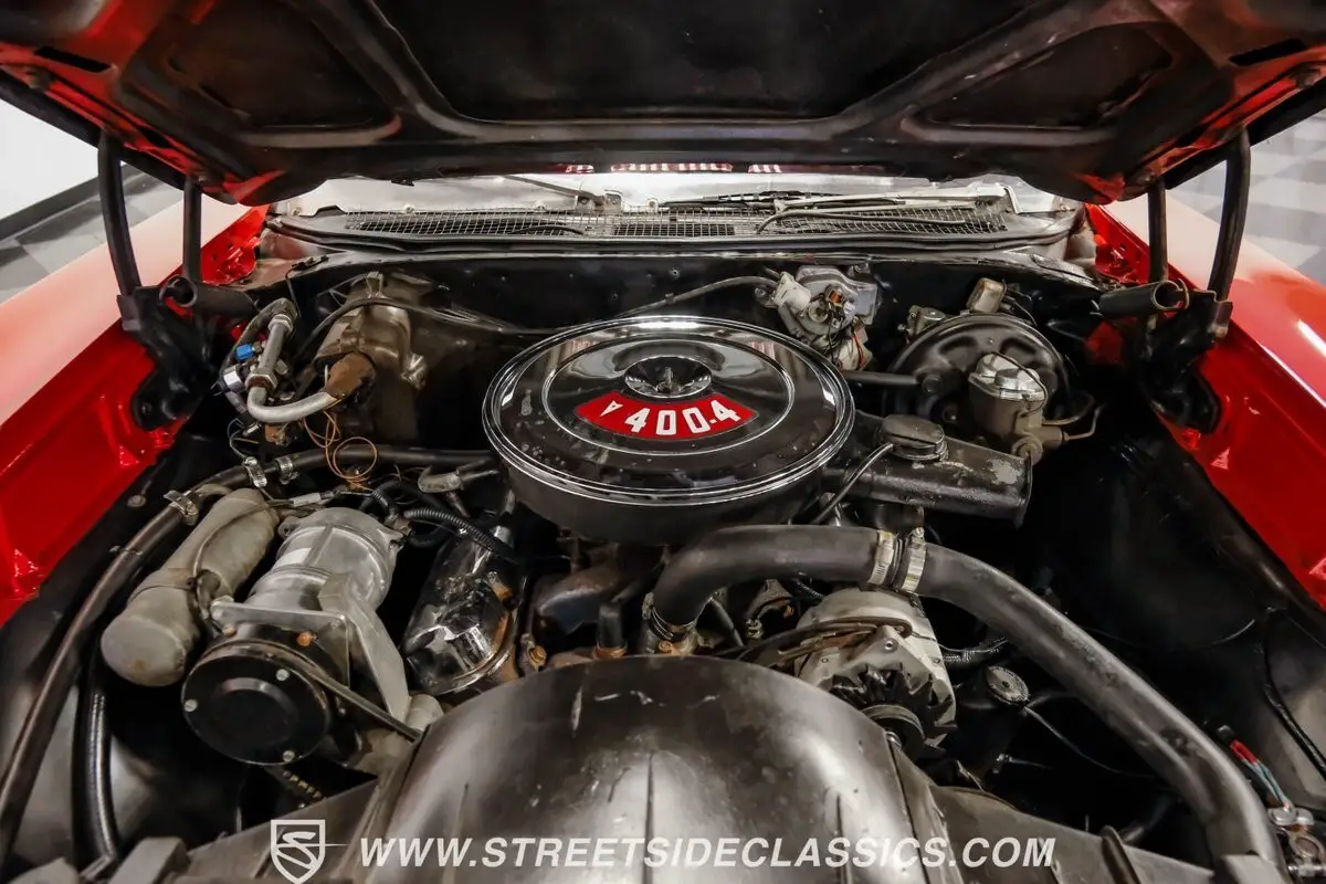 Underneath the hood lies the soul of the beast: a numbers matching YS code 400 V8 engine, complete with correct air cleaner and factory chrome valve covers. It's a setup that's respectful of its roots, with the big 400 engine block breathing through dual exhaust and expressing itself through dual mufflers. The V8 of this GTO is matched with a TH400 3-speed automatic transmission, making it a pleasure to drive.