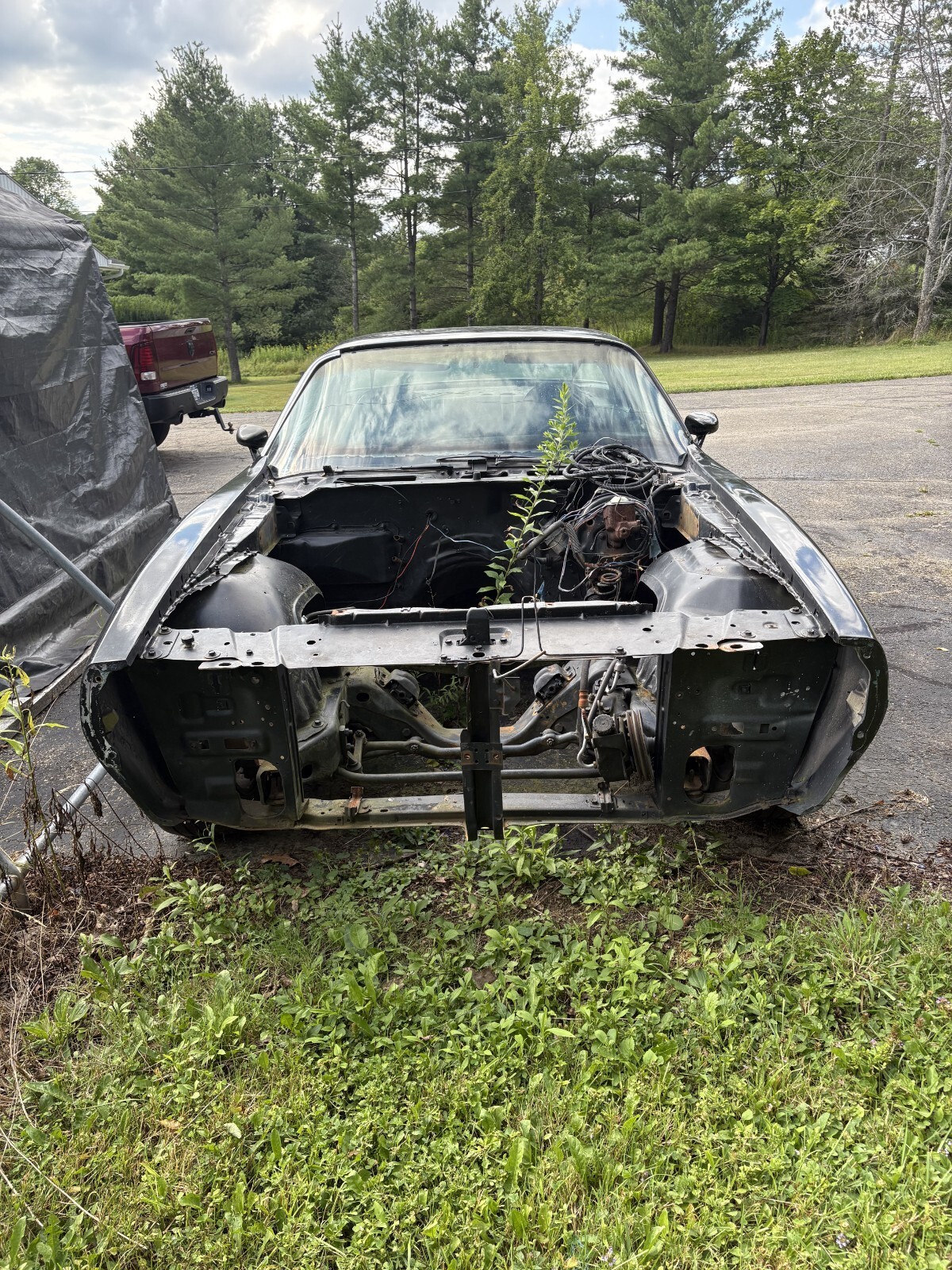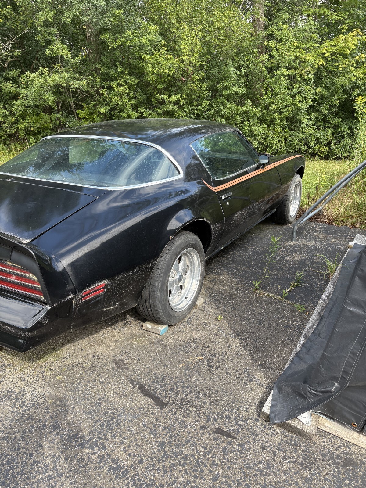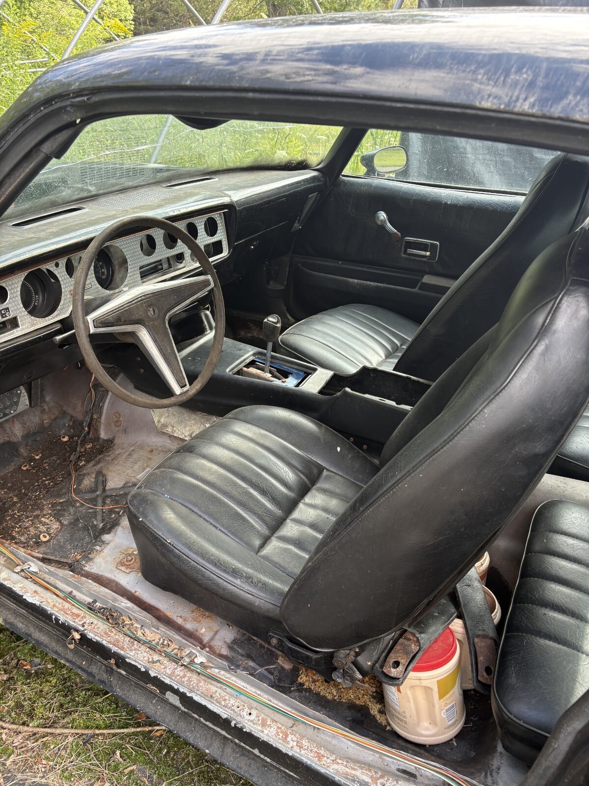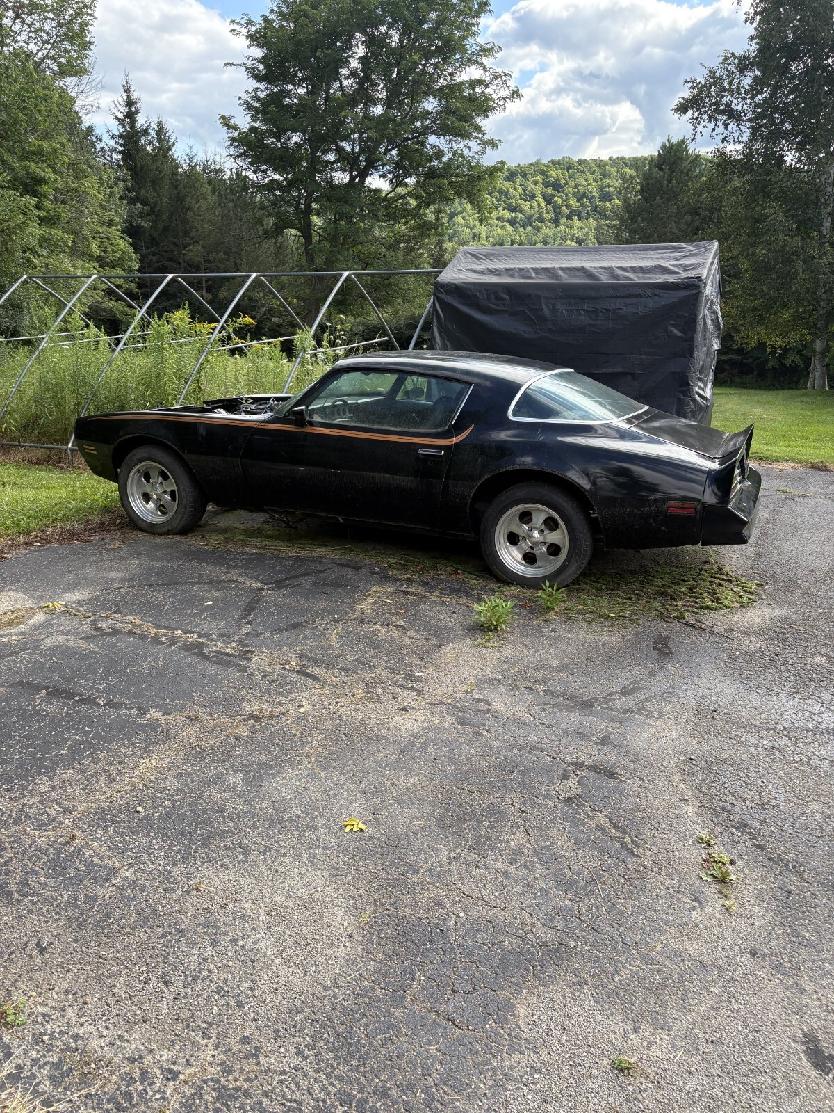 This 1976 Firebird was shipped to New York from California in 2014. This car is being sold in it's as is condition. This is a rolling chassis and has no engine. The car had a Chevy 350 in it when I purchased it. I have the 350 Turbo Transmission that will be sold with the car. Does have some Bondo repairs. The front grill needs some fiberglass work. There is an aftermarket formula hood that is included. There is some floorboard rust. This classic needs a complete restoration. I have a complete body bolt and shim kit that will go with the car. Please see pictures. The front seats are in great shape. The rear lower seats are in good shape. The rear upper back seat is fear.