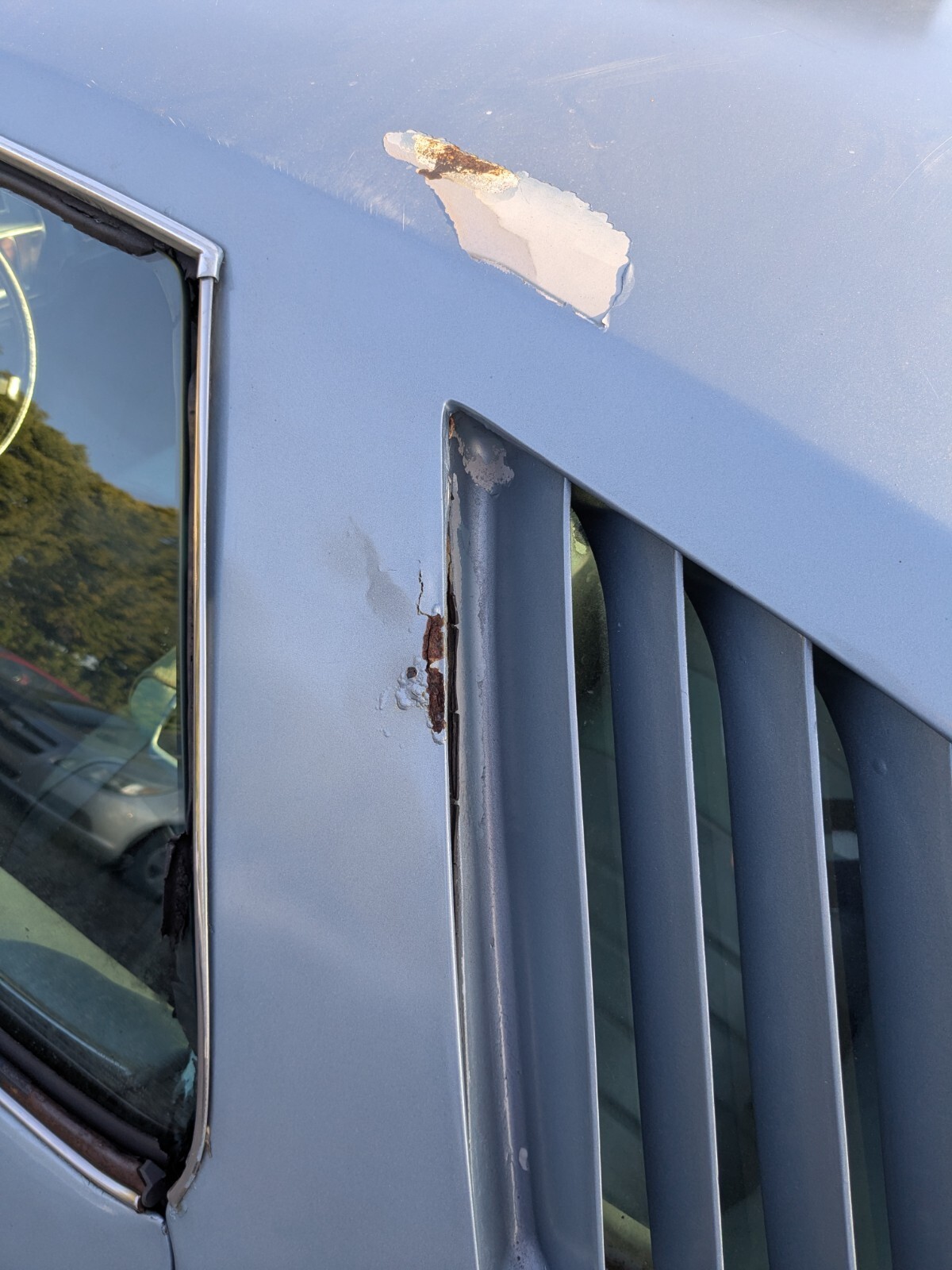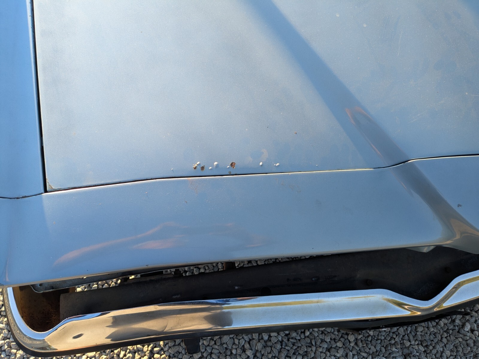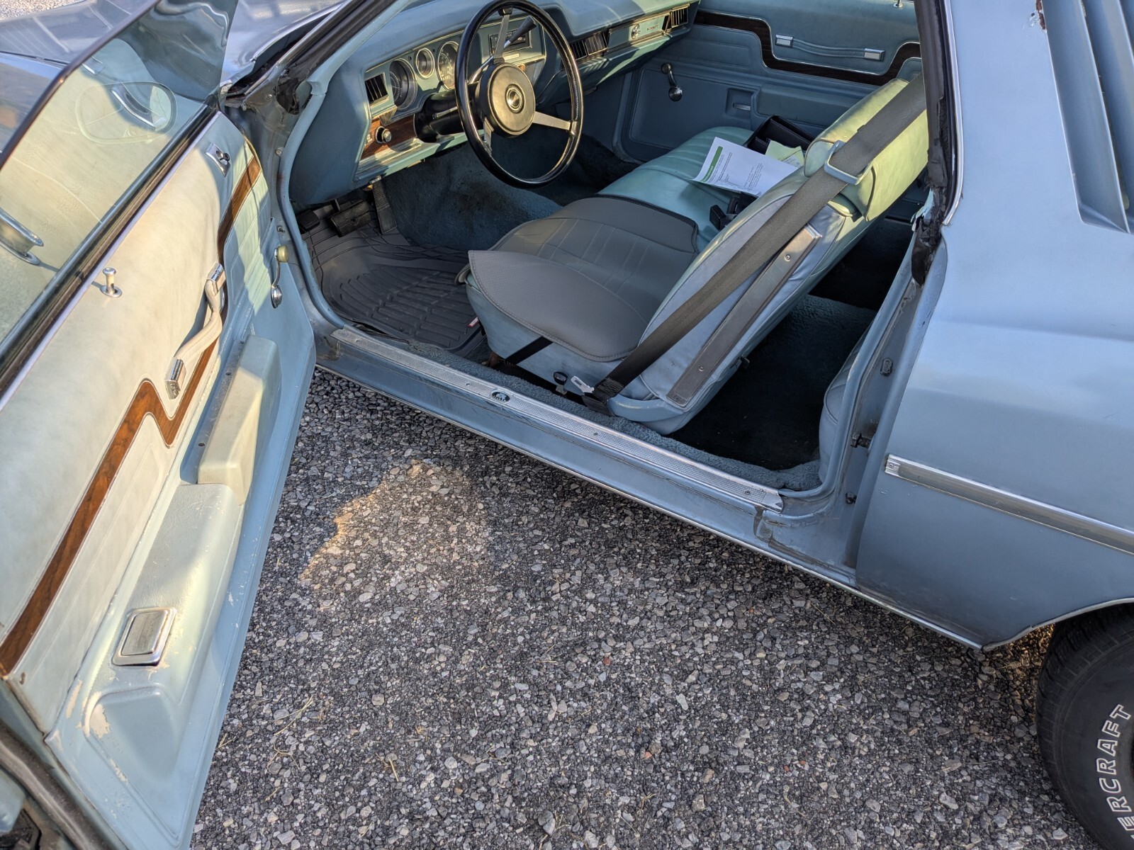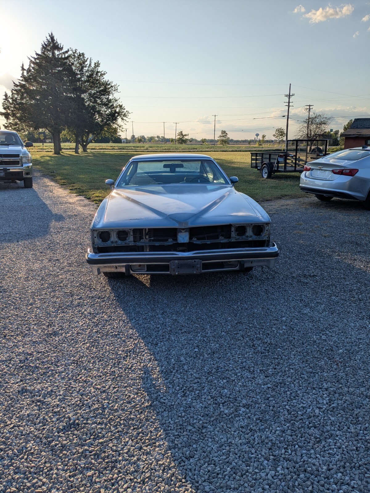 305 Chevy Engine with at least one bad cylinder, TH350 Chevy Transmission started leaking after fluid change, A/C car but not working, New carburetor, New plugs and wires, Starts on the first crank, Runs and drives, I have the parts that are missing in the pictures and some extra parts. There's rust on the outside of the rear wheel wells that has been painted over.
