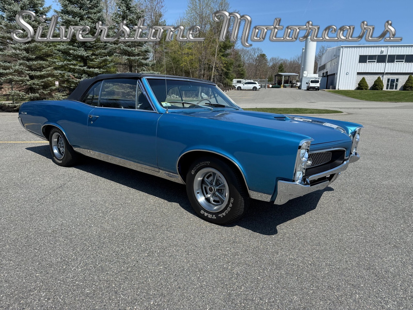 This 1967 Pontiac GTO Convertible has a 400 cid V8 with a 4BBL Carburetor coupled to a 4 speed - wide range - manual transmission; the car runs and drives beautifully and is totally mechanically sound. She has Power Steering and Power Brakes and is solid and straight. She has a couple of paint issues but nothing significant at all. The floors are solid, the undercarriage is clean and the car is ready to be parked in your garage. She is not a numbers matching car but everything is period correct and we have the PHS report if you would like to confirm her heritage; just ask.