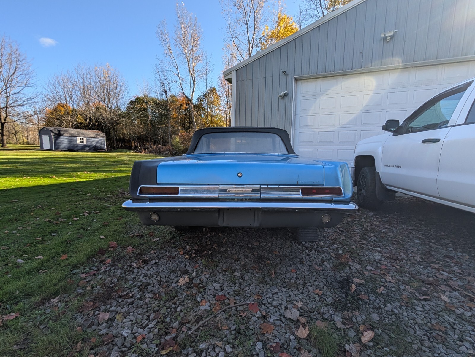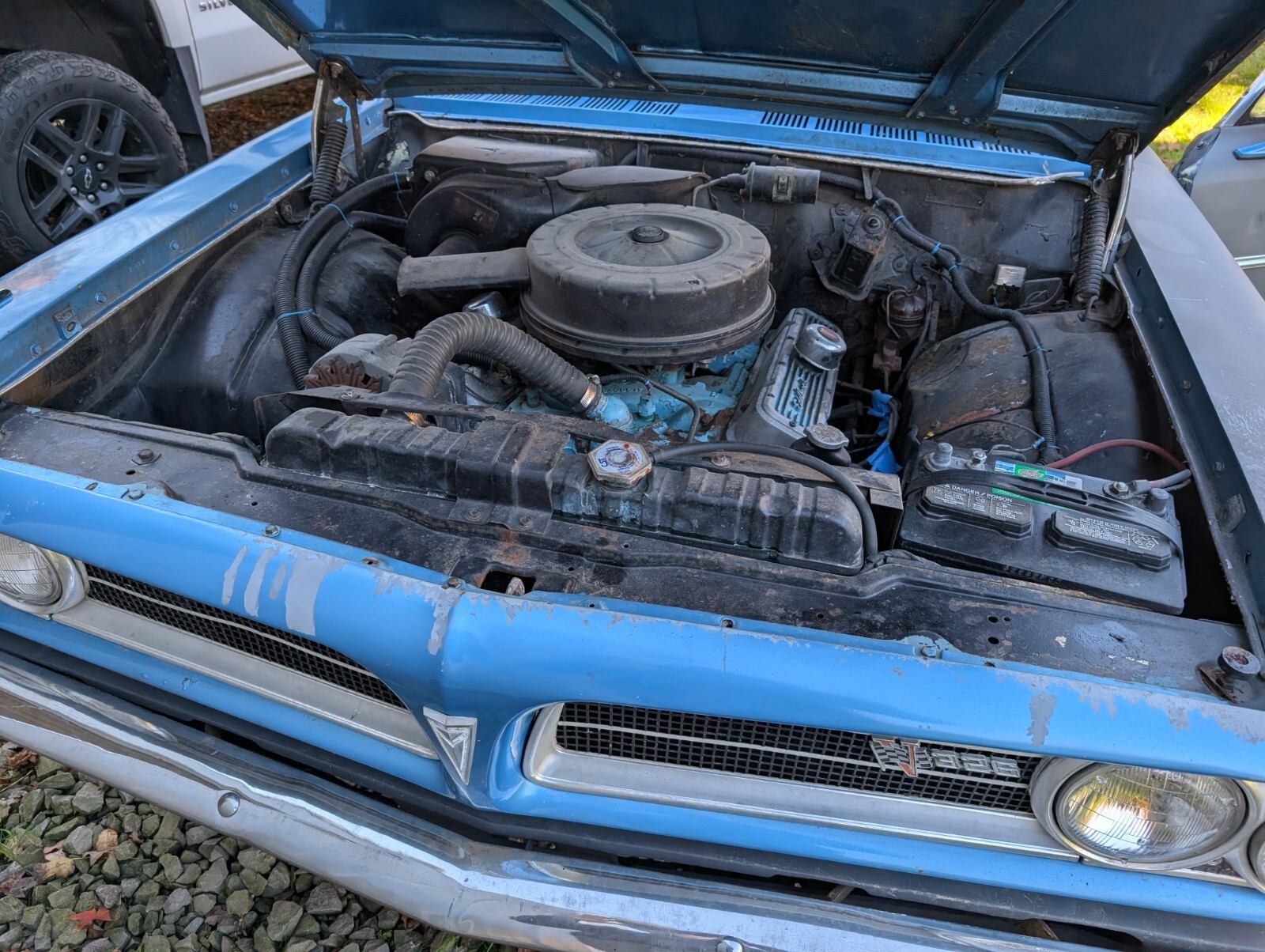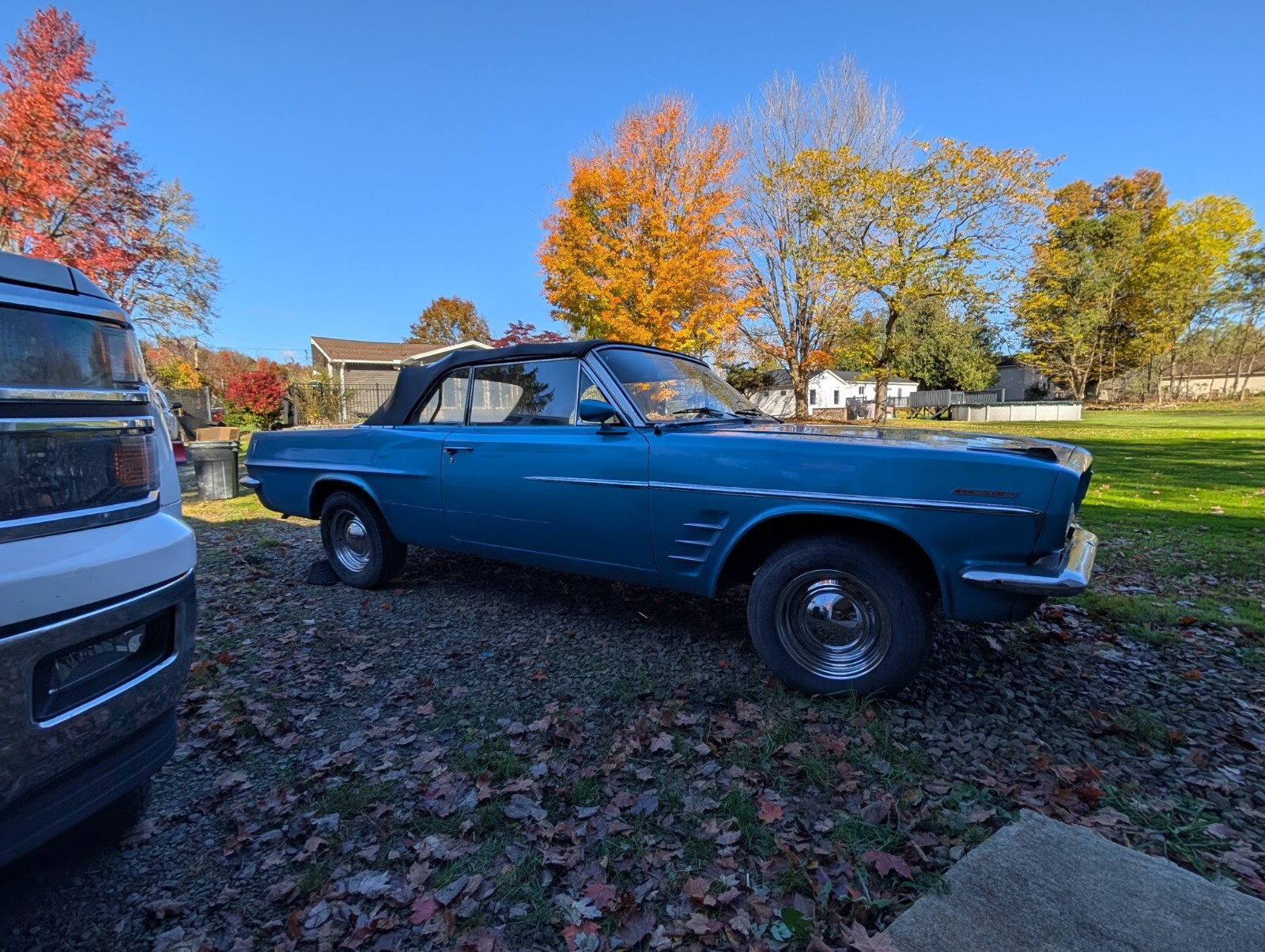 • Year/Make/Model: 1963 Pontiac LeMans Convertible 28k on odometer could be 128k • Engine: 326 V8 (336) (said to be rebuilt before purchase in 2013) • Transmission: 2-Speed Automatic with original Rope Drive and Transaxle • Steering: Power Steering • Shifter: Automatic with Floor Shifter • Top: Power Convertible Top