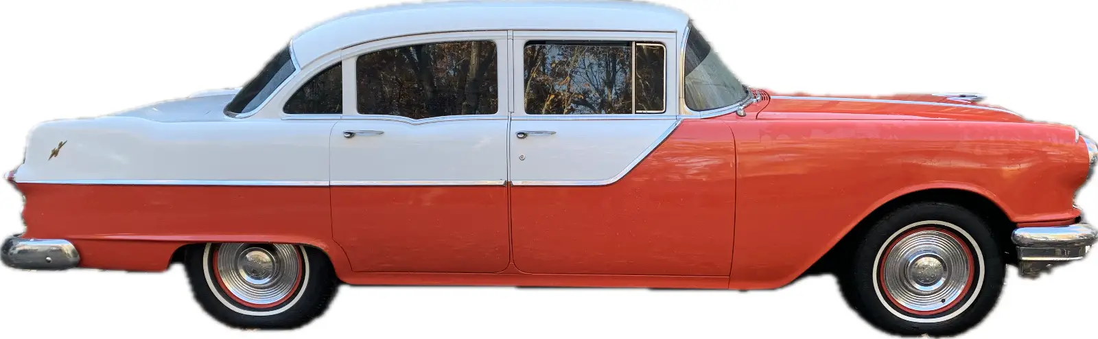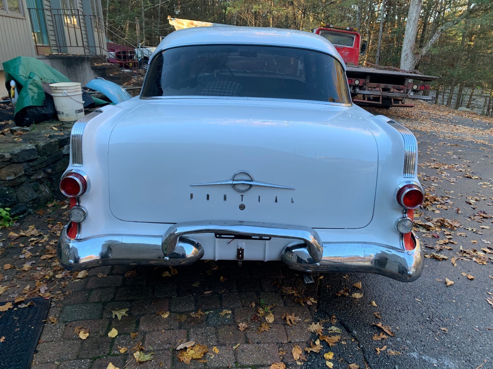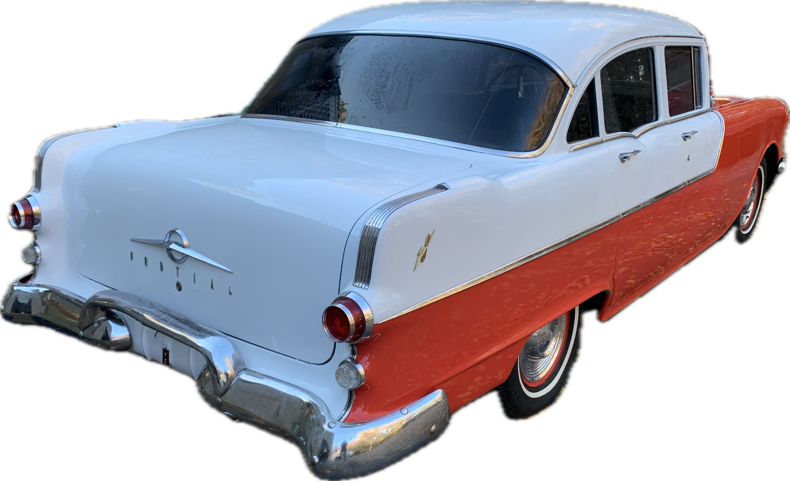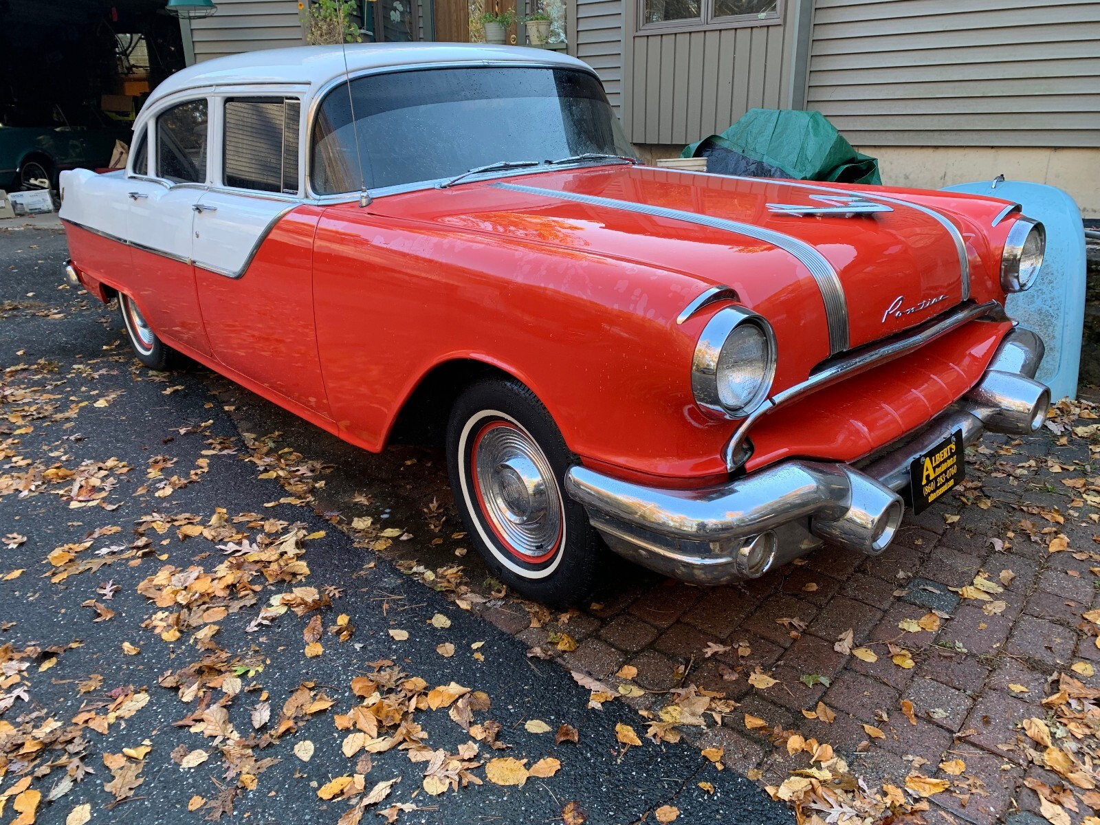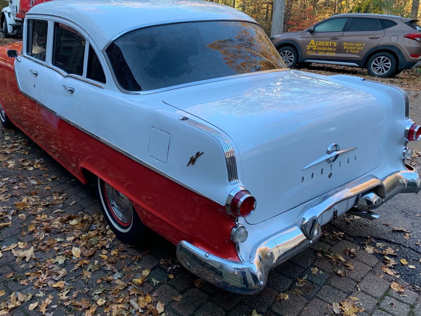 The 1955 Pontiac Chieftain in two tone paint is a classic collector car with a red & white exterior and gray interior. This sedan has a V8 engine with automatic transmission, making it a smooth and comfortable drive. With only 96985 miles on the odometer, this Pontiac Chieftain is a rare find for car enthusiasts looking for a piece of American automotive history. Its 8 cylinders and rear drive make it a powerful and stylish option for any collector's garage.