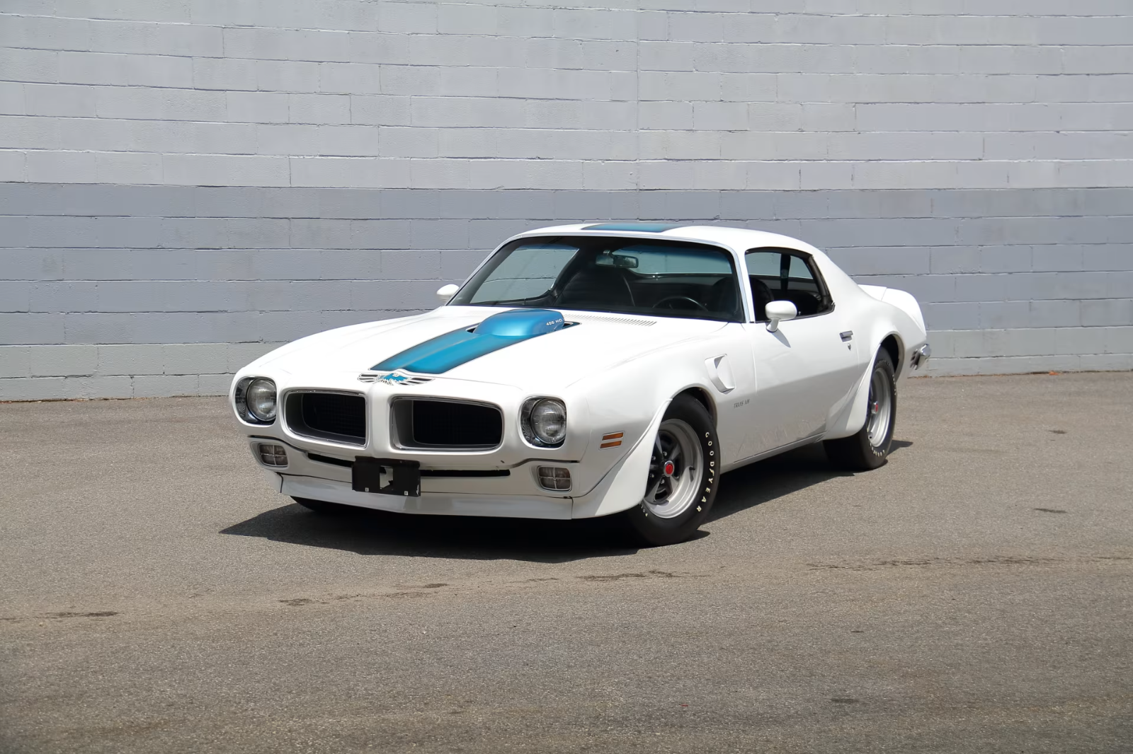 Pure muscle with a comprehensive rotisserie restoration. Trans Am Tribute car-400 CI v-8 engine-Automatic transmission-Cameo white exterior with blue accents-black interior-air conditioning-tinted glass-power steering-dual exhaust-power disc brakes-Rally II wheels w/ Goodyear polygas GT tires