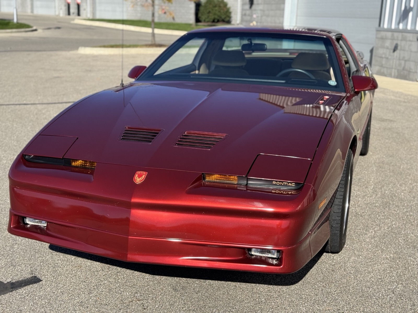 This 1987 Pontiac Firebird Trans Am GTA offered for sale as a true one documented owner is a rare find in its original Flame Red Metallic color with only 14,000 original miles. Runs great and ready for a new owner to enjoy its classic design and performance. With a clean title, this Trans Am GTA is sure to impress any collector or enthusiast looking for a piece of automotive history. Ideal for someone seeking a low mileage, well-maintained classic car in its original condition. Take your time viewing the 40 pictures and zoom in on that original window sticker and original 1987 one owner title. I can’t imagine there are many like this out there in the market place for sale with this cars provenance.
