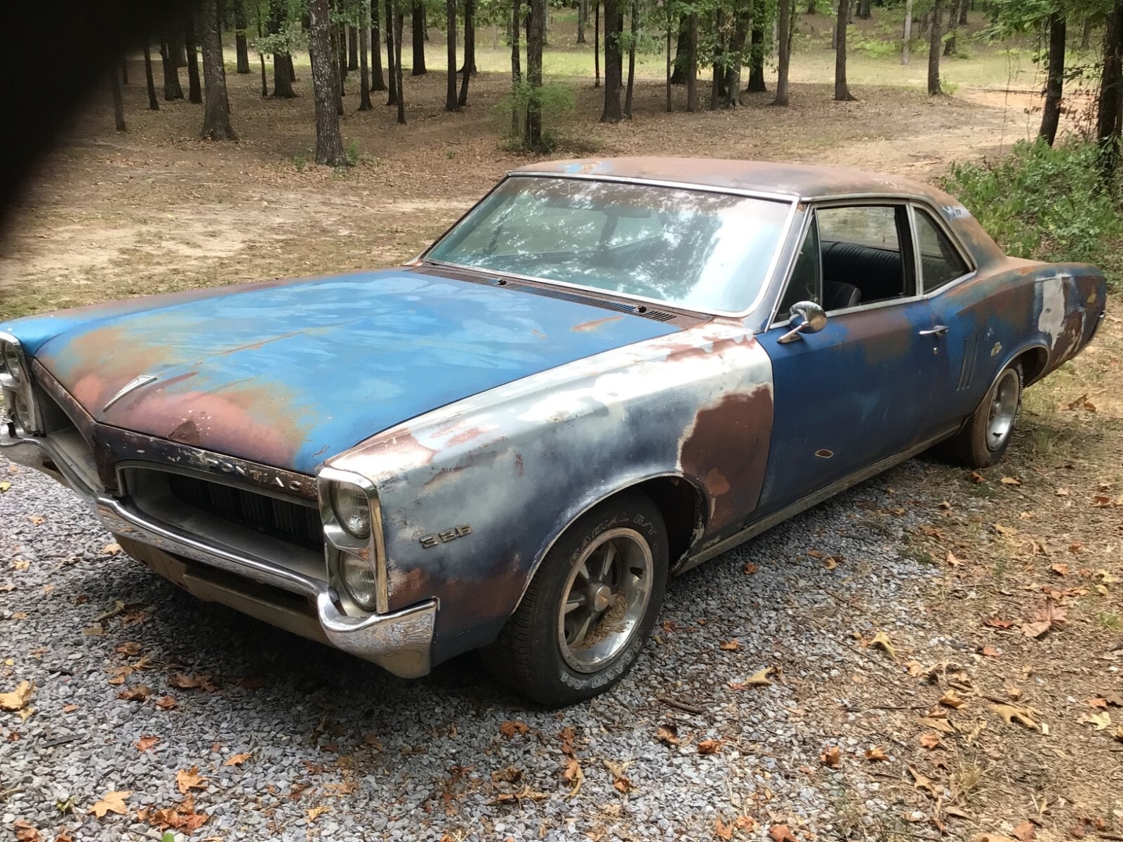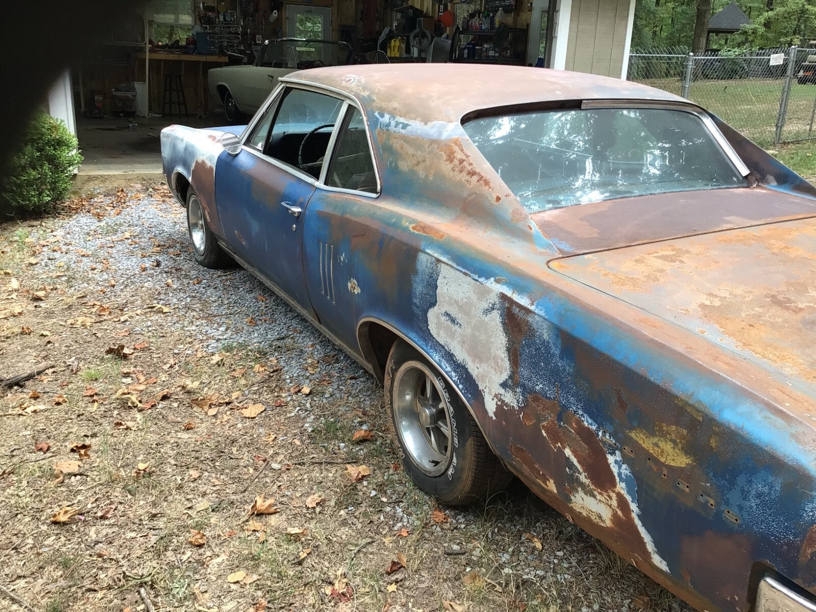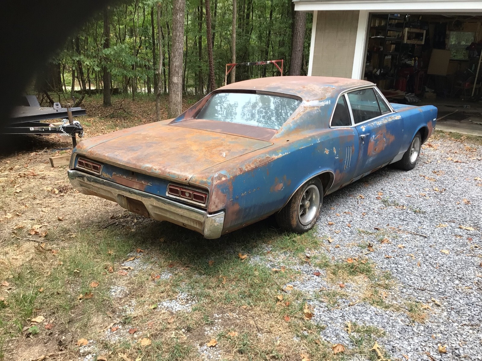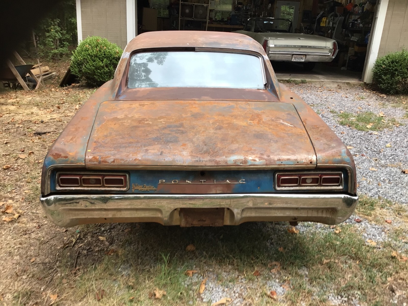 At auction is a 1967 Pontiac Lemans Sport Coupe. Car has rust in quarters, some places in floor, pan, and panel behind rear window. The panel behind the rear window will need to be replaced. (see photos) other than that, the body seems to be fairly solid, with no signs of major accidents. Did not have a vinyl top so top It’s not rusted out. Trunk looks to be fairly solid. In summary, car will need panel replacements, but in my opinion, nothing major.