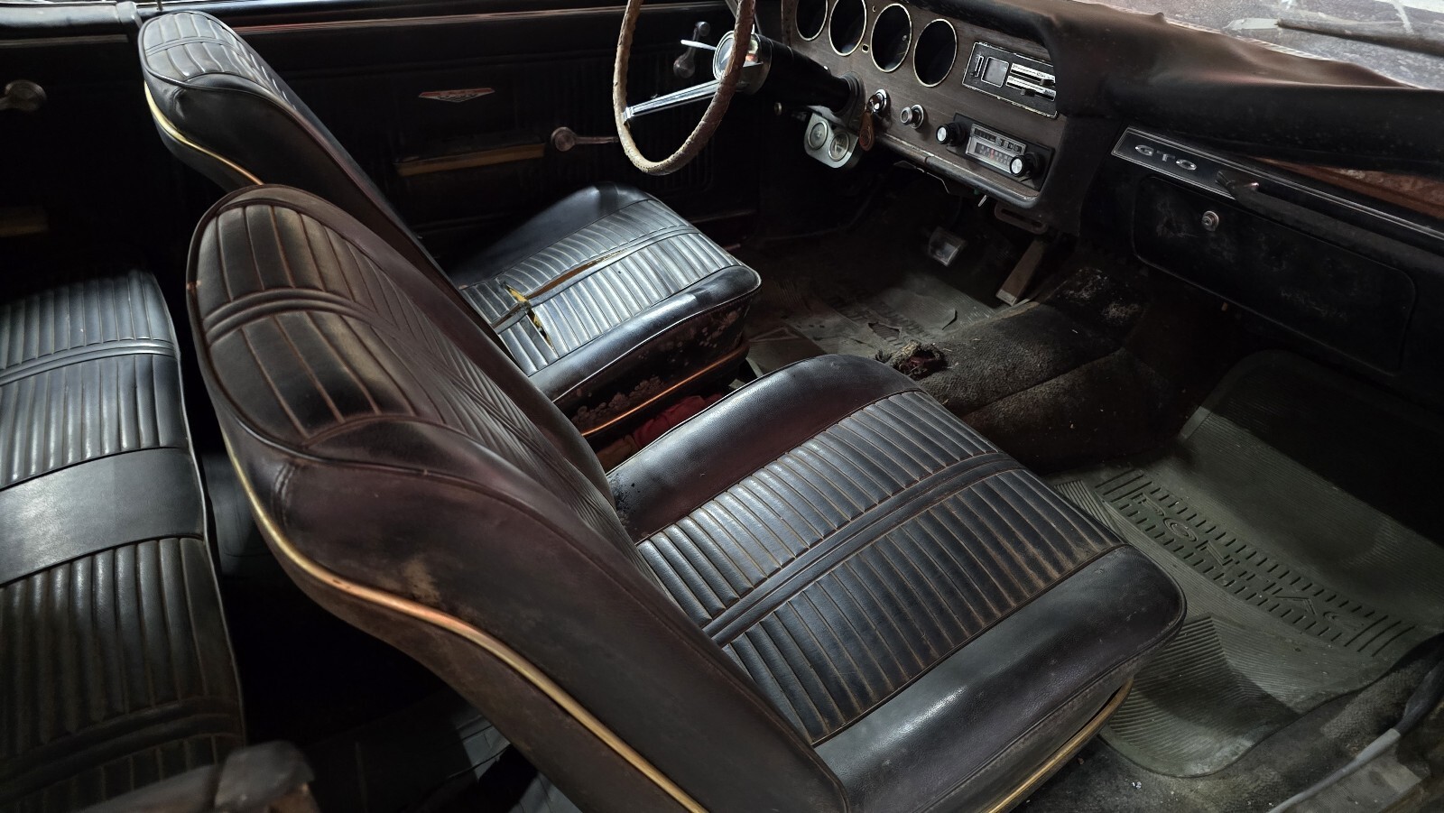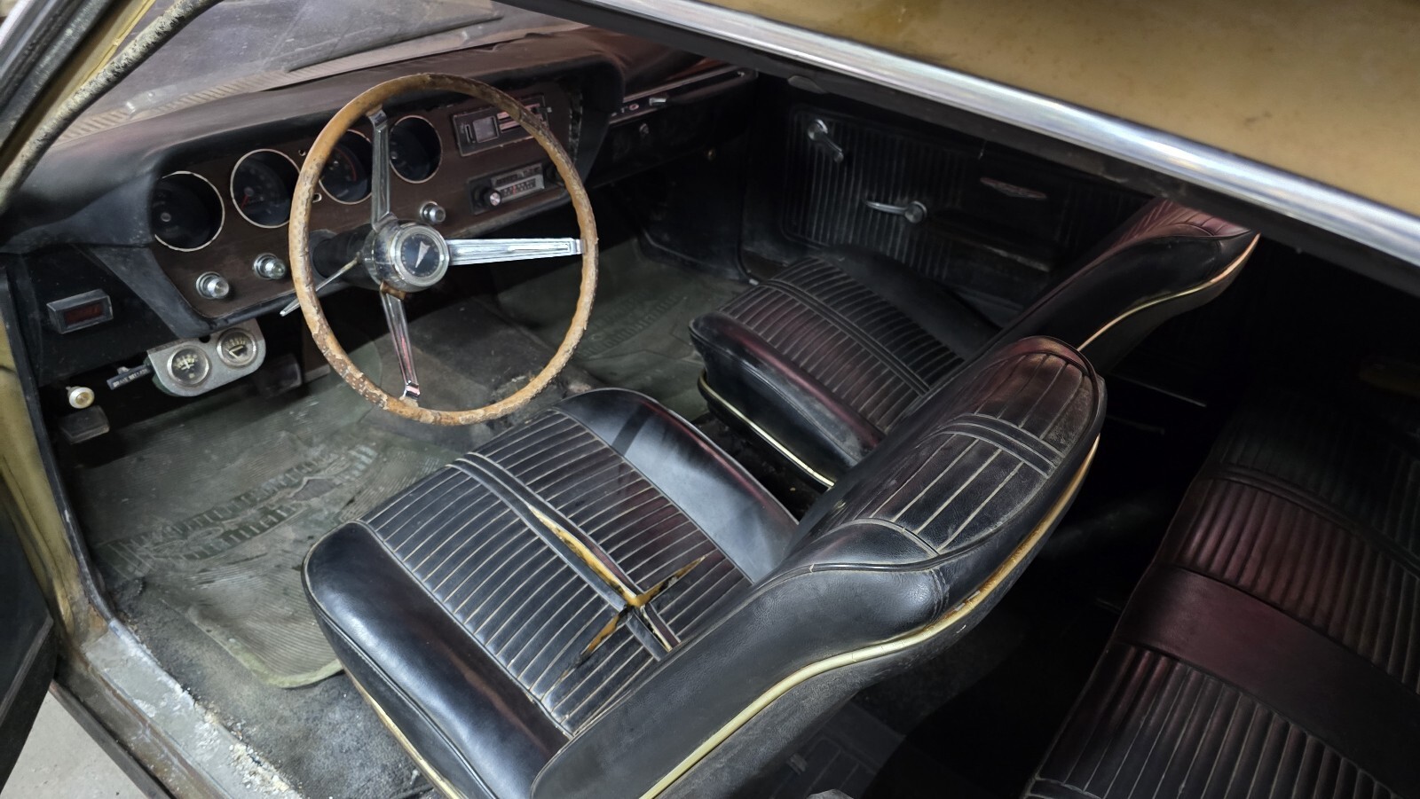 The car is a roller—no engine or transmission—but has a solid frame, solid floors, and a complete interior, making it an excellent candidate for a high-end restoration or really cool driver. These color and drivetrain combinations are among the most desirable in the GTO world, and factory Tiger Gold cars are especially hard to find.
