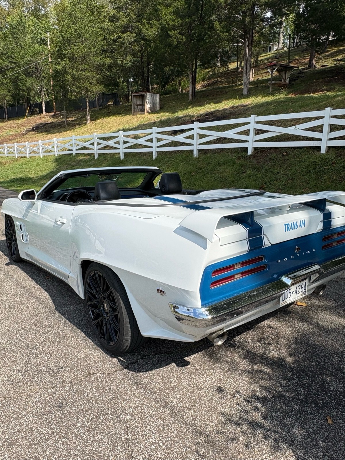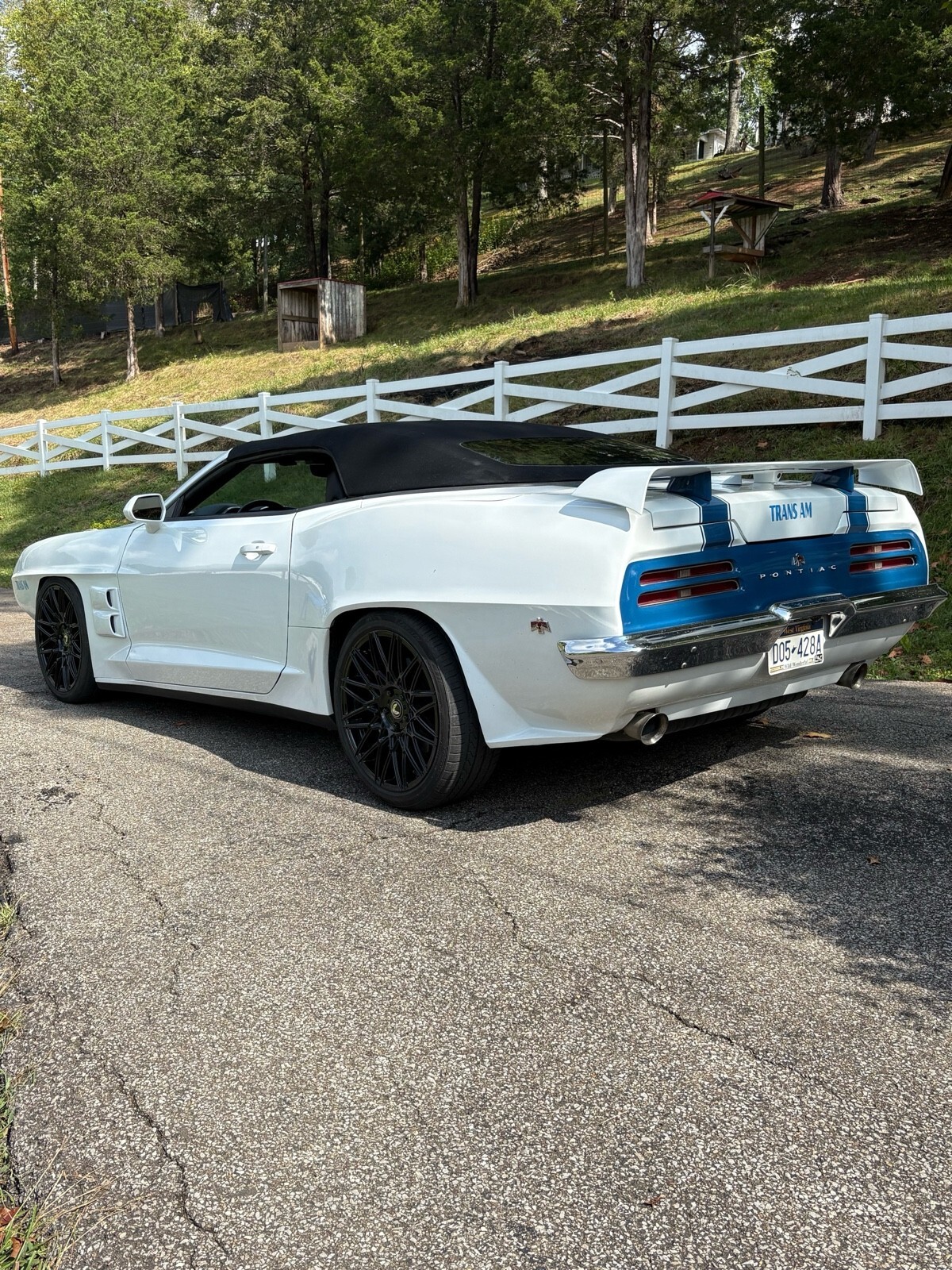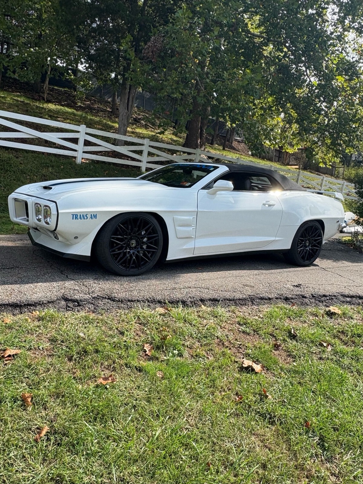 The 1969 Pontiac Trans Am tribute car being described is a restomod, which means it has been built on 2020 Camaro 2SS platform. It has a sleek white color, runs great, and is mainly used for weekend drives. With only 80,100 miles on the odometer. Has 1969 trans am steel panels grafted on 2020 Camaro 2SS. Best of both old and new, having safety an cool looks from the 60’s.