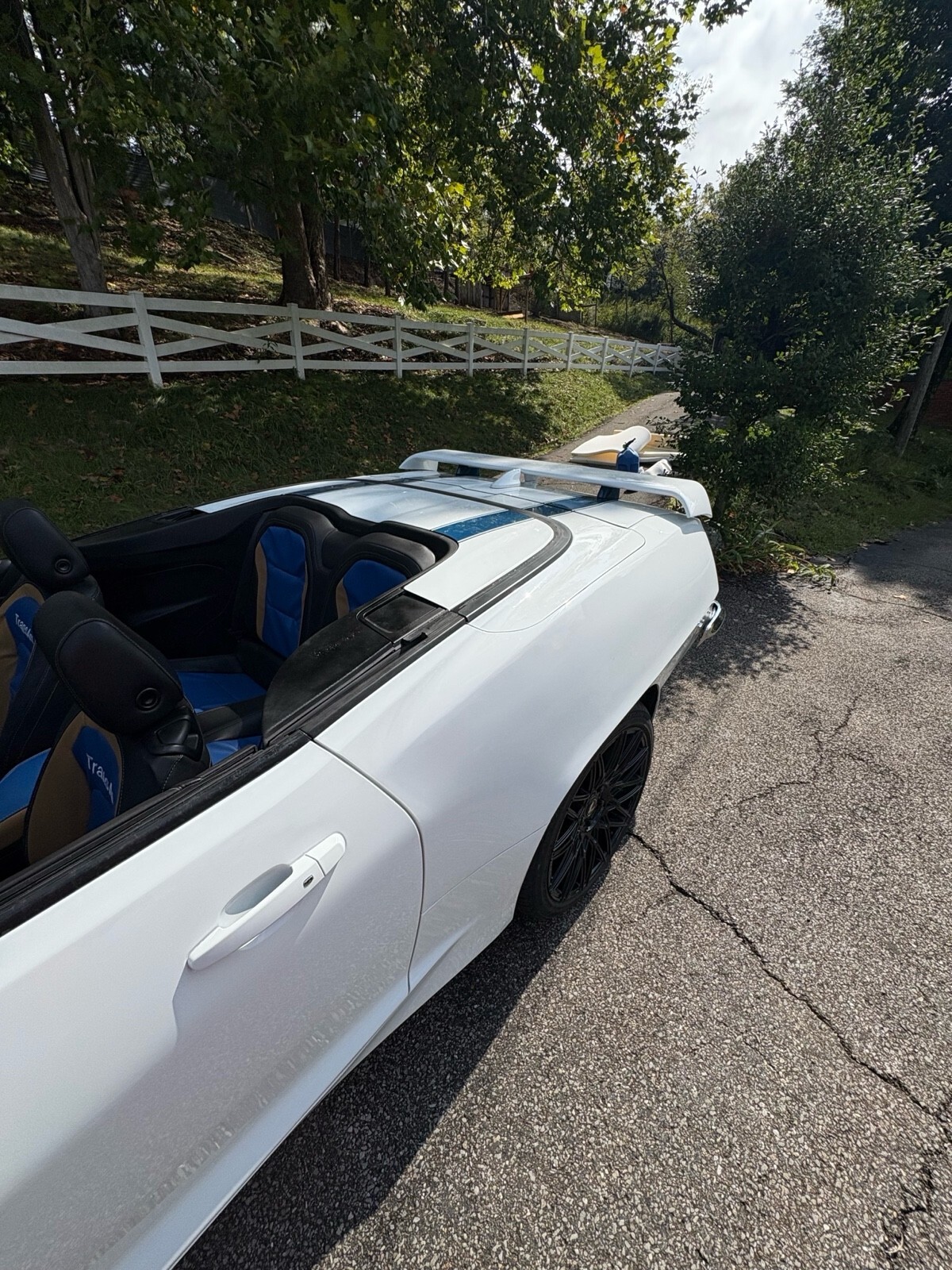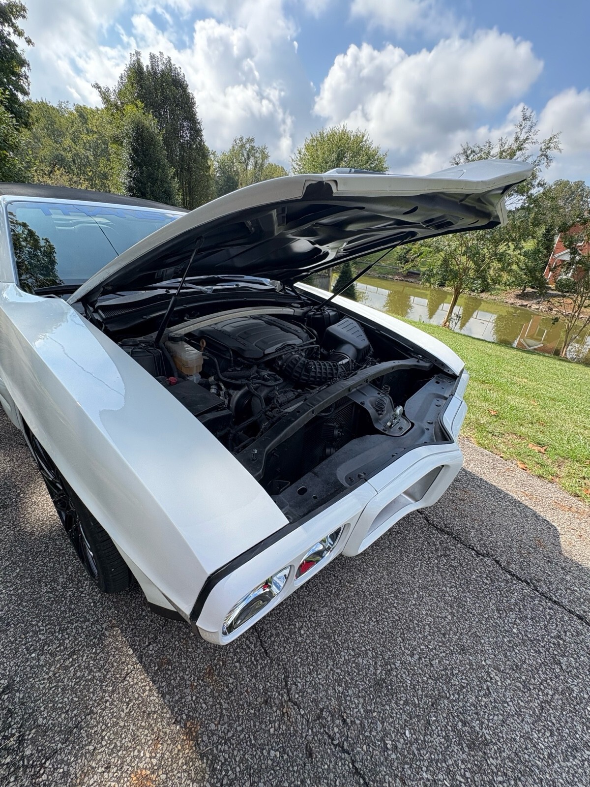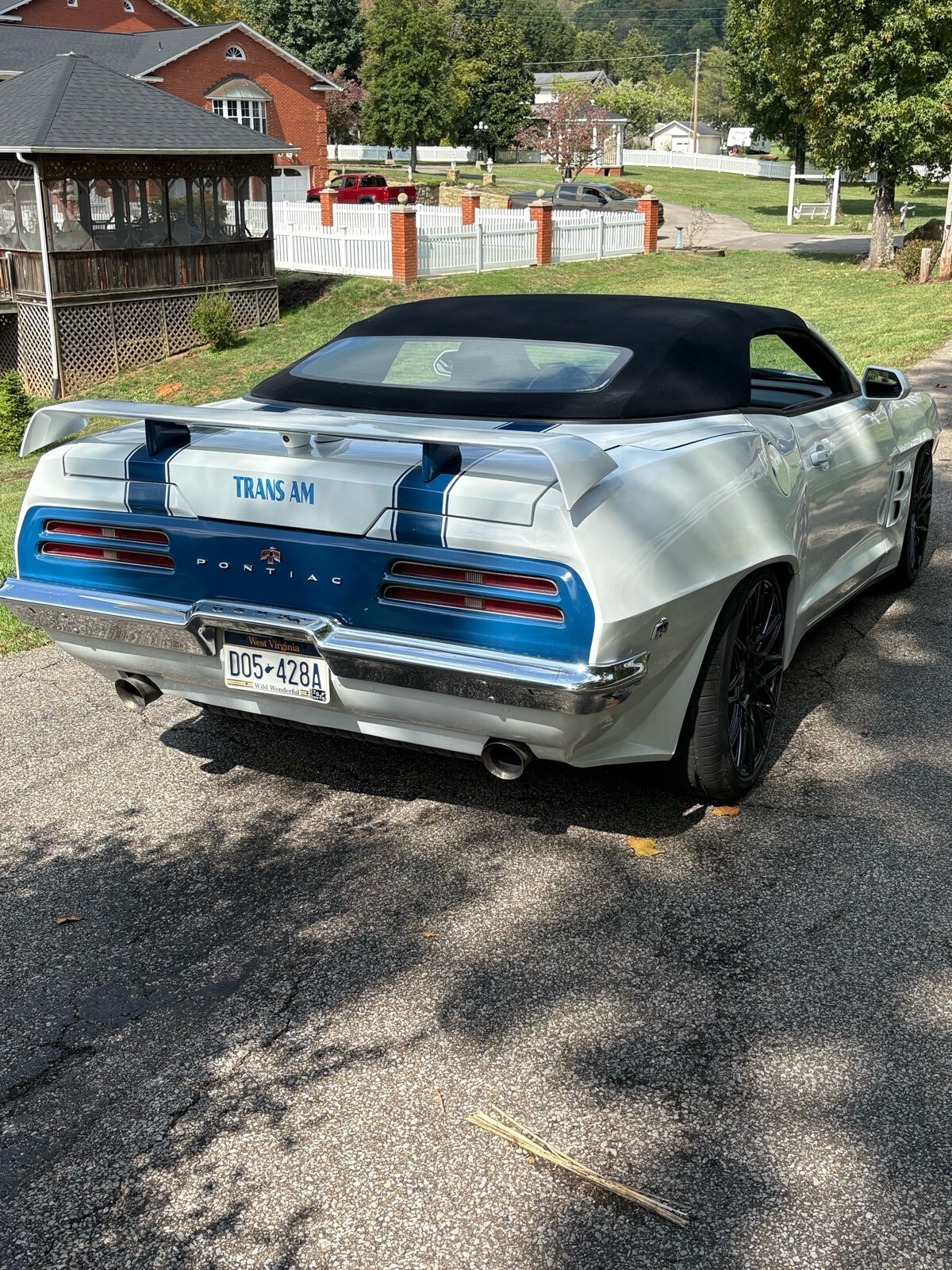The 1969 Pontiac Trans Am tribute car being described is a restomod, which means it has been built on 2020 Camaro 2SS platform. It has a sleek white color, runs great, and is mainly used for weekend drives. With only 80,100 miles on the odometer. Has 1969 trans am steel panels grafted on 2020 Camaro 2SS. Best of both old and new, having safety an cool looks from the 60’s.
