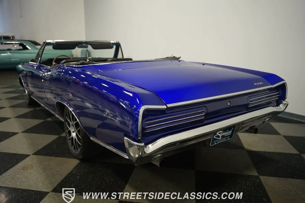 This spectacular 1966 Pontiac GTO Convertible Tribute has received a comprehensive, high-quality, frame-off restoration. All the GTO exclusive details were added during the restoration, including the famous GTO hood, grills, turn signals, badging and unique GTO tail-panel and taillights. Finished brilliantly in Custom House of Kolor "Blurple" with four coats of clear, the deep gloss of this paint is amazing to see. A set of 18-inch Niche wheels wrapped with performance tires staggered 235/40ZR18 front and 275/35ZR18 rear gives this Pontiac the perfect stance, and the LED halo headlights and LED tail lamps look great at night.