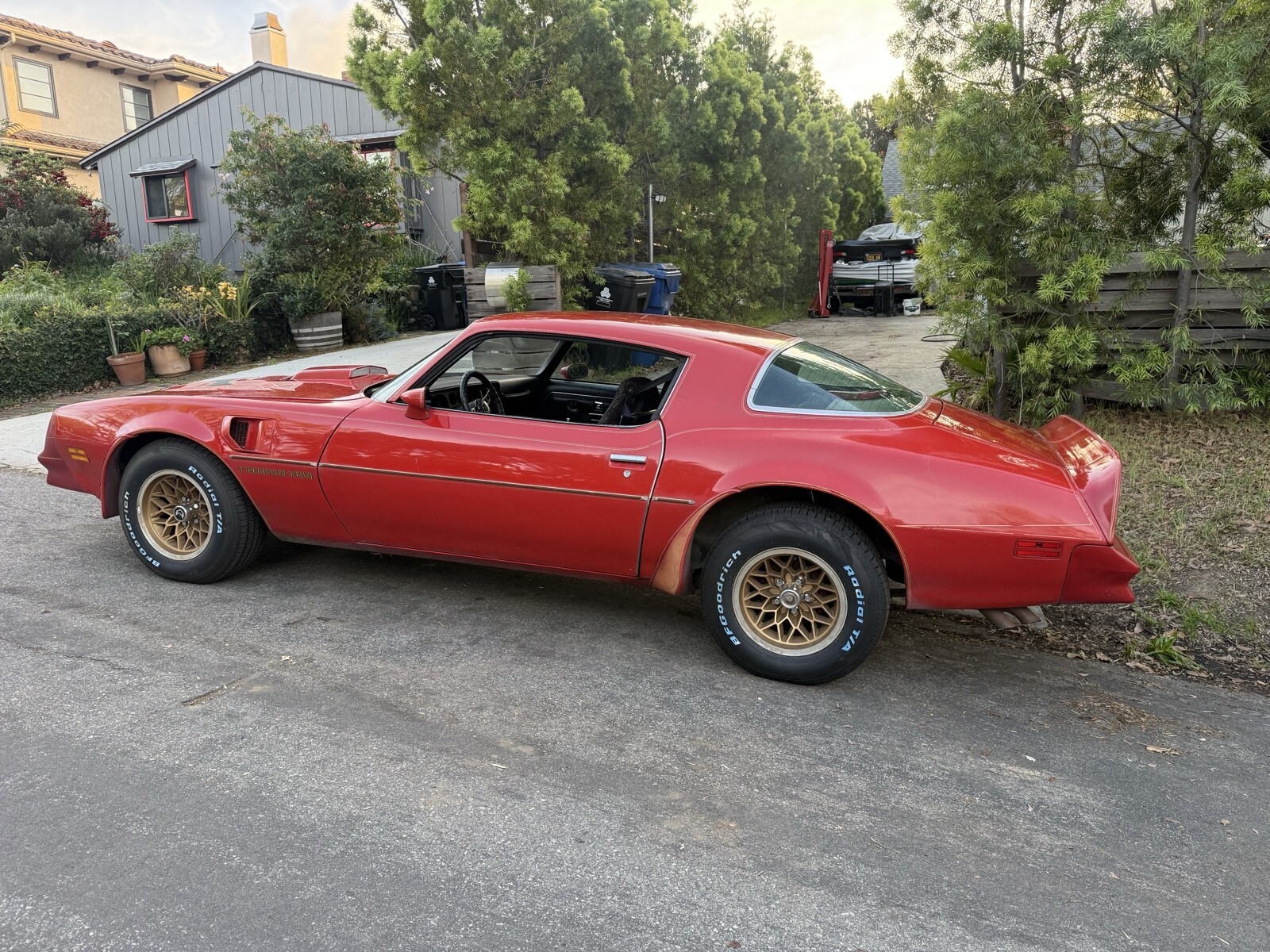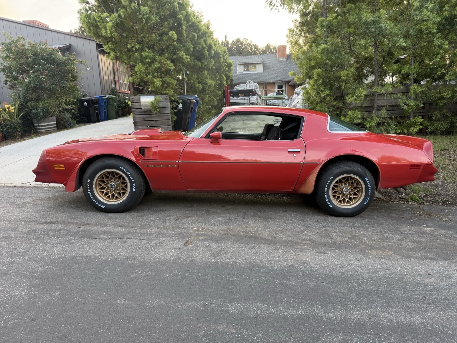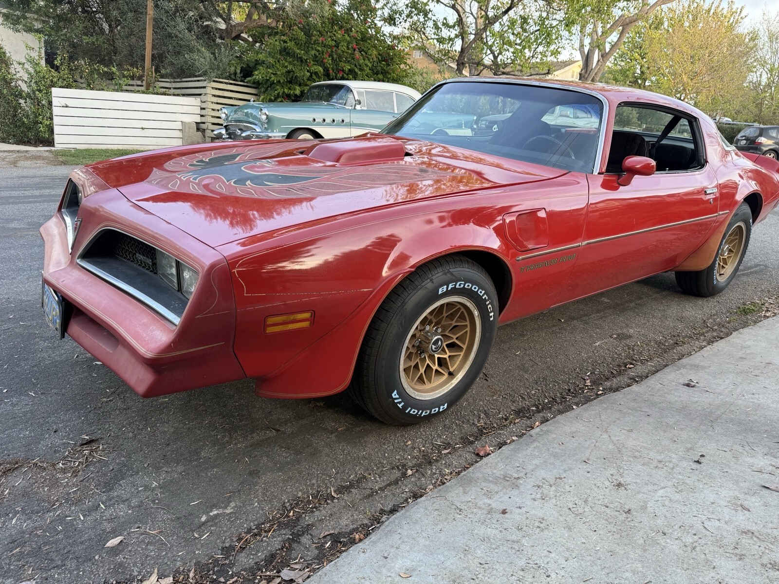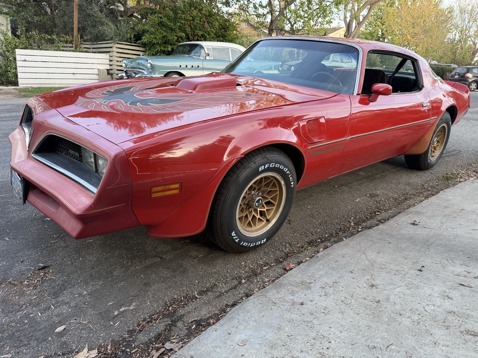 Here is a lovely example of a 1978 Pontiac Firebird Trans Am. Affectionately know as Big Red. This is a pretty unusual car as it just pulled it out from a garage 3 blocks from my house after being parked up in a garage for over 20 years. It was a one owner vehicle from new and I have all the records from day one I've got a folder of over 3 inches of receipts and paperwork detailing all the work was done over the years. The car is very original with mostly original paint finished and red with a black interior. This car was a equipped with the desirable WS6 performance package, 403 V8, automatic transmission, 3:23 posi rear end, electric windows, door locks, with factory air conditioning (needs a new AC compressor as the old one is leaking). I found the original build sheet under the back seat. Its been a California car all is life and still retains the original blue and yellow license plates. The engine is original to the car and has a partial VIN stamped on the block. The panels are all original and there is only one spot of rust at the bottom of the right fender, otherwise the car is rust free. I replaced the whole braking system with new master, calipers, wheel cylinders, shoes and brake hoses. A new set of BFG Goodrich T/As were also installed and new shocks front and rear. The car runs really nicely with no issues. I have the original handbooks and warranty paperwork. Clean California title. Drive your passion. The car is located in West Los Angeles and inspections are welcome. Three 10 Seven 39 Seven 180 ask for neil. Serious buyers only, no trades.