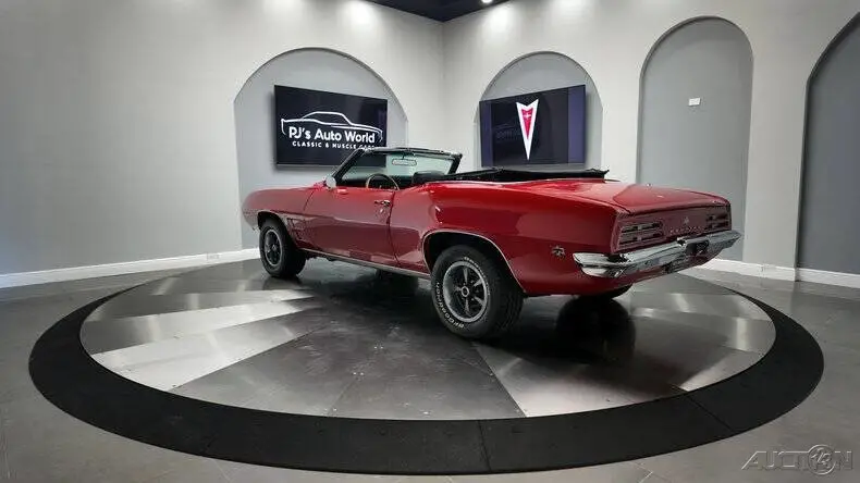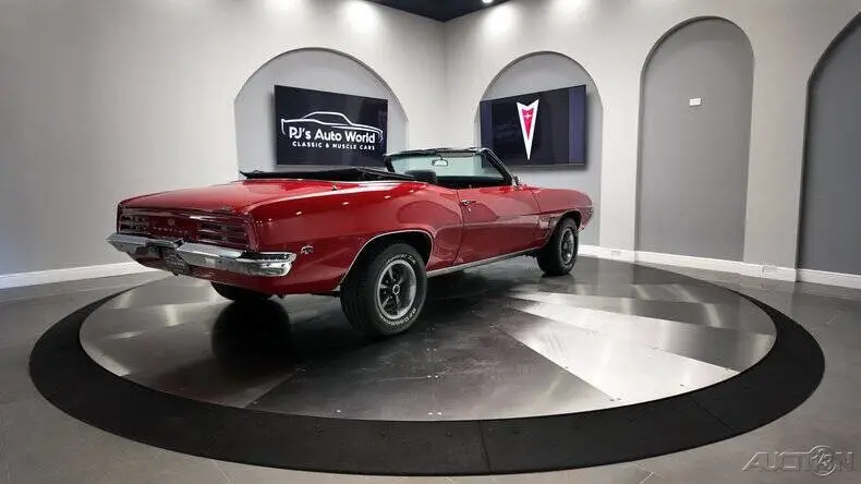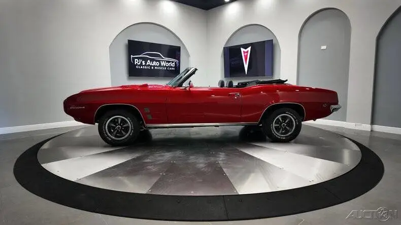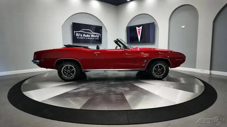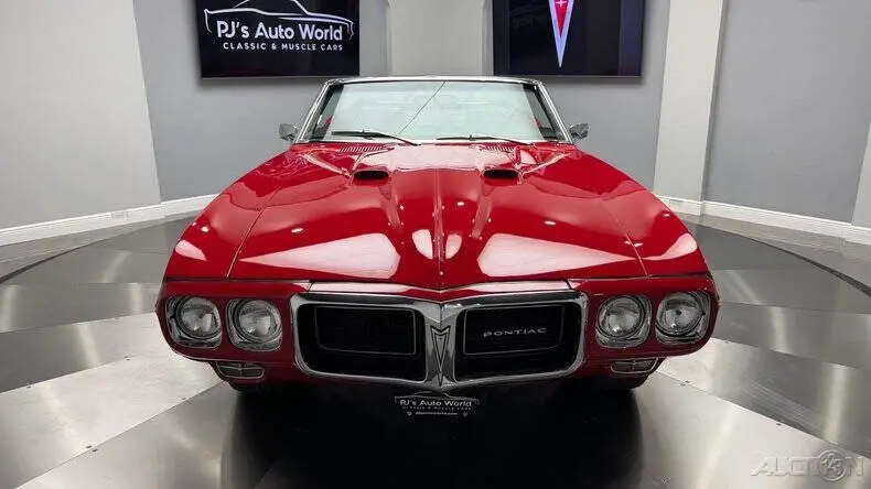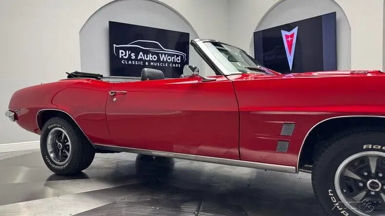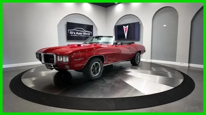 1969 Pontiac Firebird Convertible for SaleBody-Off Restoration with painted and detailed undercarriageMatching Numbers YE Suffix Code 350 Cu In V8 engineHolley 4-barrel carburetorHEI electronic ignitionDetailed engine compartment with chrome engine accessoriesCeramic coated headers with dual exhaustPower steering, front power disc brakes14 Rally II Wheels BF Goodrich Radial T/A TiresRefinished in Matador RedScooped hoodHood tachometerDual chrome mirrorsBlack convertible topBlack bucket seat interiorAuxiliary gaugesWood grip 3-spoke steering wheelRetrosound AM/FM radio.