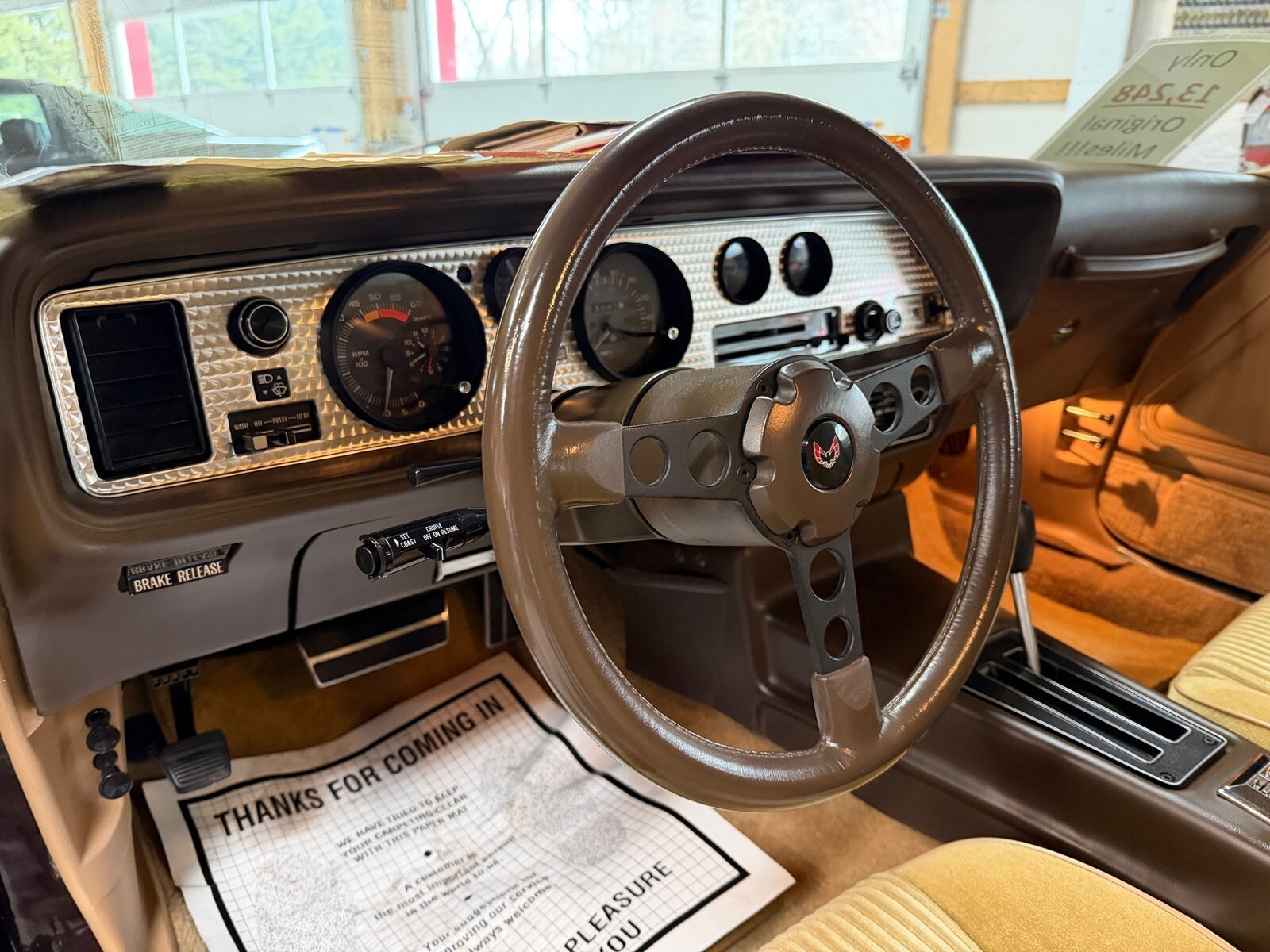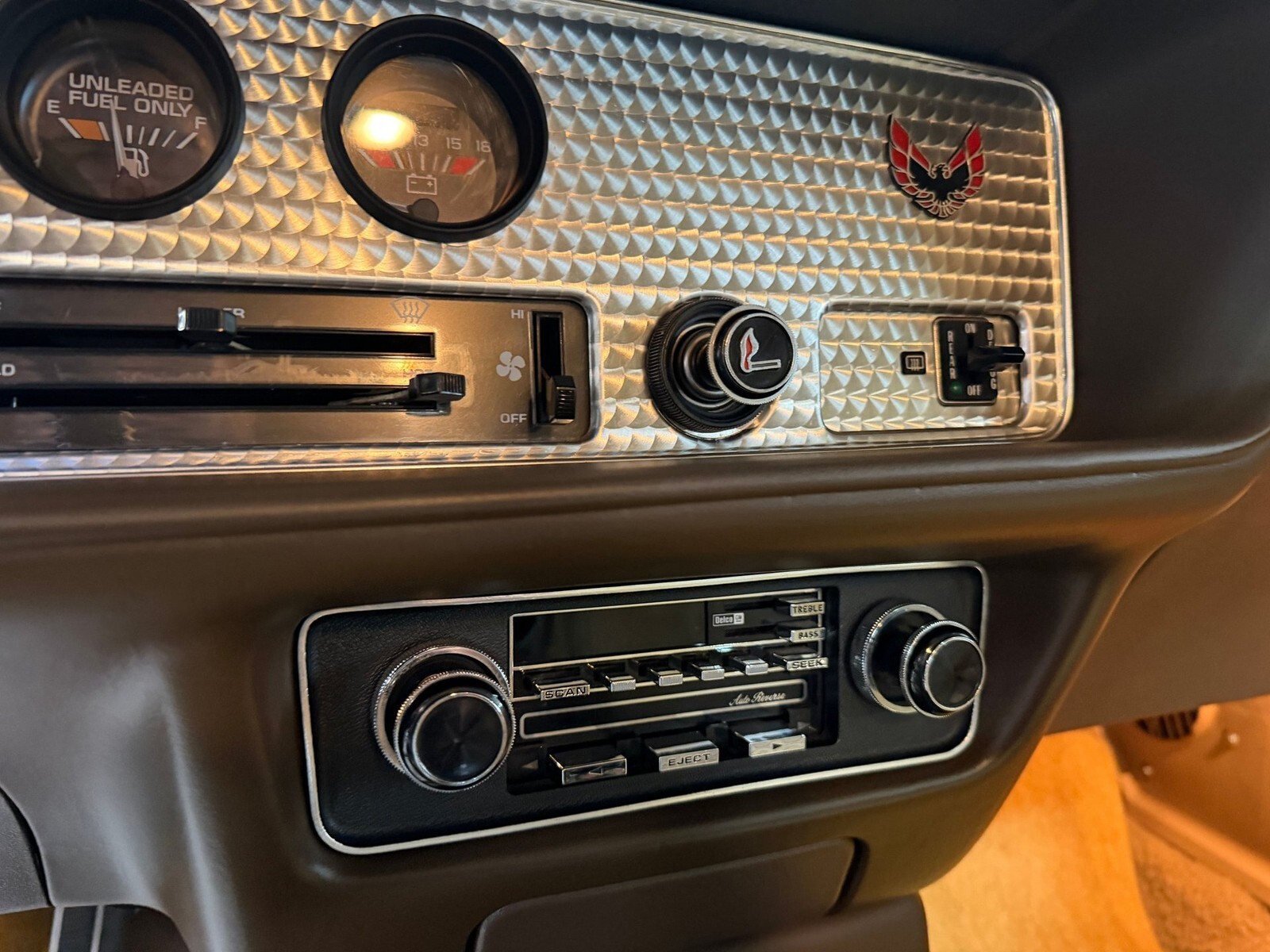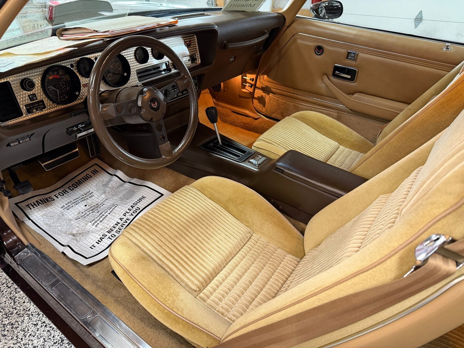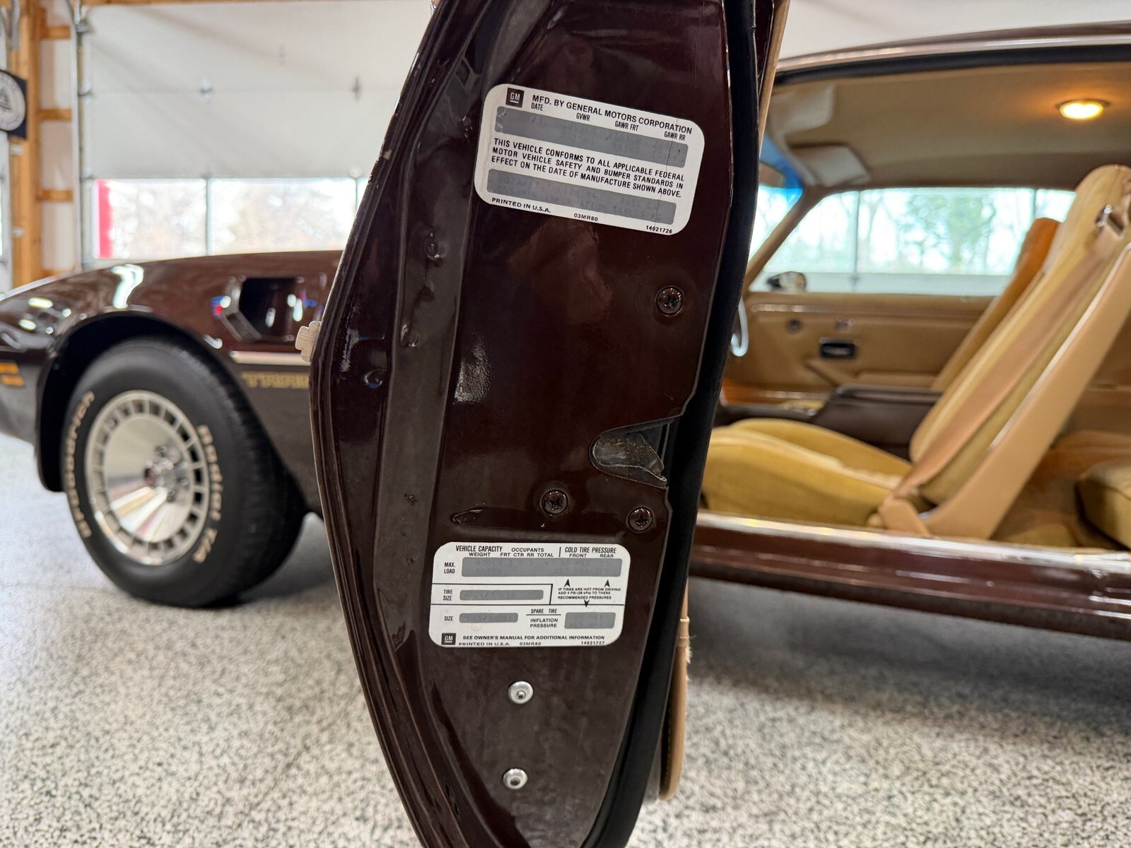 Finished in its factory Dark Brown Metallic exterior over Camel Tan interior with factory Custom Velour bucket seats, this Trans Am retains what is believed to be its original paint which presents beautifully with excellent gloss, straight panels, and consistent gaps. There is no rust, no bubbling, and no evidence of past body repair, and the underside remains exceptionally solid having benefited from early undercoating during its life in the Pacific Northwest climate. The bumpers, trim, and weatherstripping remain in impressive original condition and the car sits on correct factory N89 Turbo Cast aluminum wheels wrapped in properly sized tires. The trunk is clean and solid retaining its original mat, jack, and rear speakers, further reinforcing how untouched this car remains.