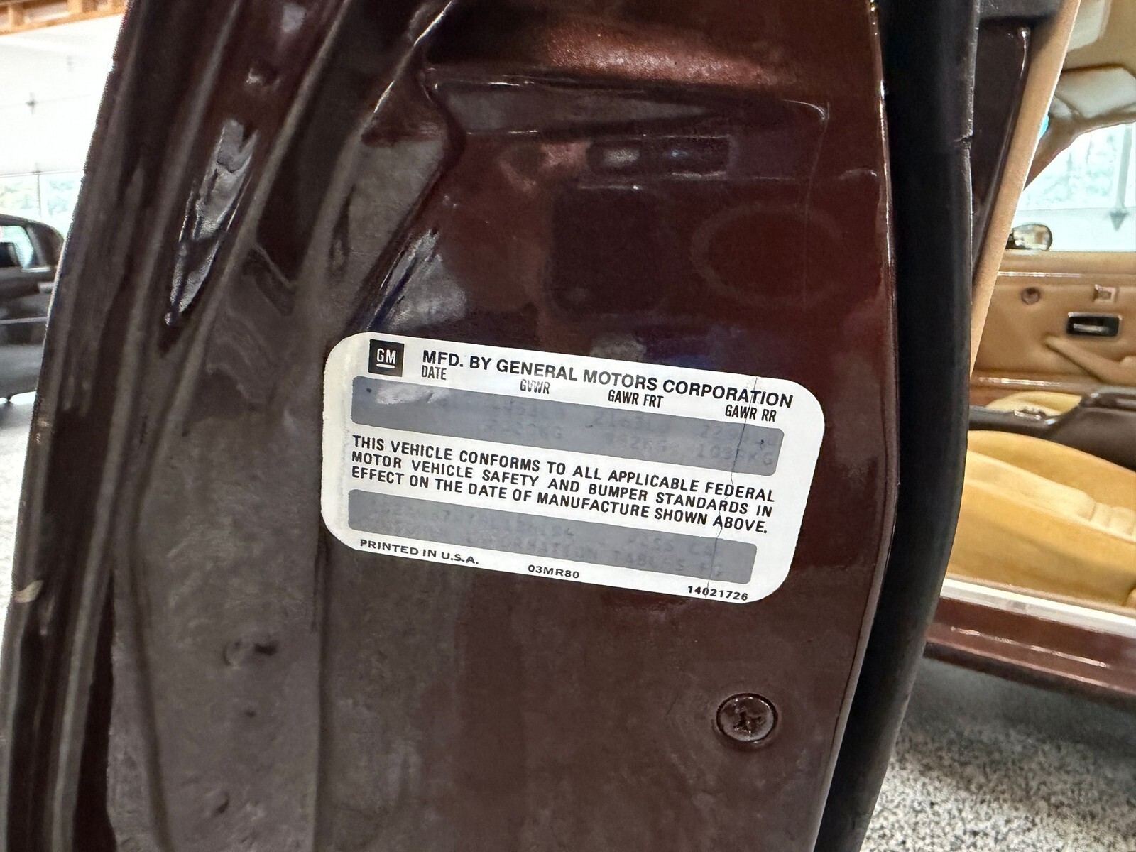 Power comes from the numbers matching 4.9L T/A 301 4 barrel V8 which remains in the car with the VIN present on the engine block. The engine bay is highly original with factory hoses, clamps, vacuum lines, decals, and markings still visible throughout. The car starts easily, runs smoothly, and delivers a refined driving experience noticeably tighter and quieter than typical higher mile examples. Around four years ago approximately $3,800 was invested in preventative servicing including fuel tank replacement and fuel system service, carburetor, shocks, tires, fuel sending unit, fuel pump, battery, spark plugs, transmission service, sway bar links, and front brakes. The factory four wheel power disc brakes stop straight and confidently while the original type exhaust produces a correct mild tone.