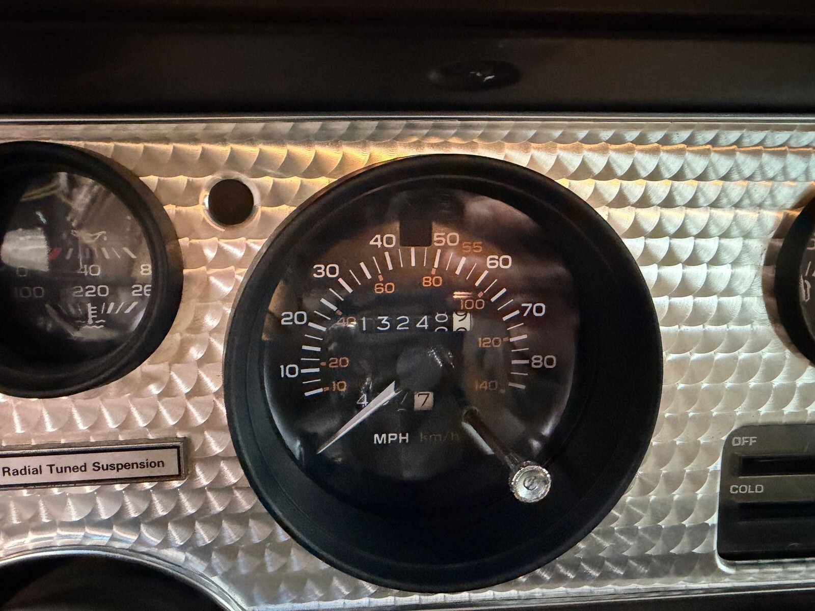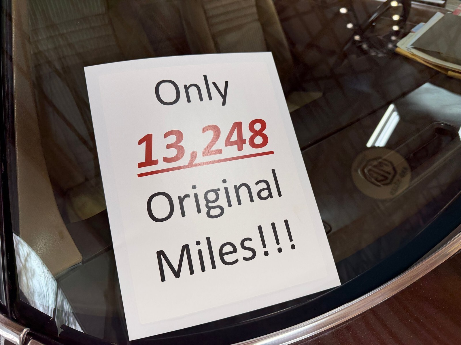 Inside, the Camel Tan Custom Velour interior is remarkably preserved and immediately reflects the extremely low mileage. The original seat upholstery shows virtually no wear, the dash remains crack free, and the engine turned dash bezel presents like new. The original digital cassette stereo remains in place and the dash was never cut for aftermarket equipment. Door panels, carpet, package tray, and trim pieces are all excellent, while the headliner was professionally replaced and blends seamlessly with the preserved interior. All gauges, lighting, wipers, horn, rear defroster, clock, cigarette lighter, blower motor, power windows, and the distinctive driver side front fender power antenna function as intended. The interior remains odor free and still carries the unmistakable feel of a preserved original car.