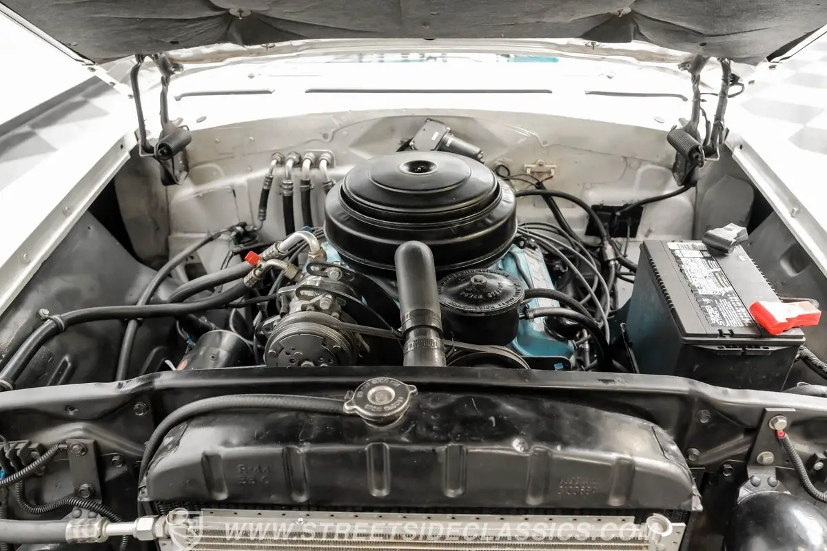 Under the hood features a period-correct 316 V8 engine rebuilt prior to 2010, paired with a 2-speed Powerglide automatic transmission also rebuilt before 2010. The drivetrain upgrades include a new GM wiring harness, rebuilt brake system, and replacement of the gearbox and power steering pump. The addition of southern air conditioning, electric wipers, power windows, and powder-coated wheels enhances both performance and convenience. This vehicle delivers smooth acceleration, responsive steering, and reliable braking, making it a pleasure to drive while maintaining its classic essence.