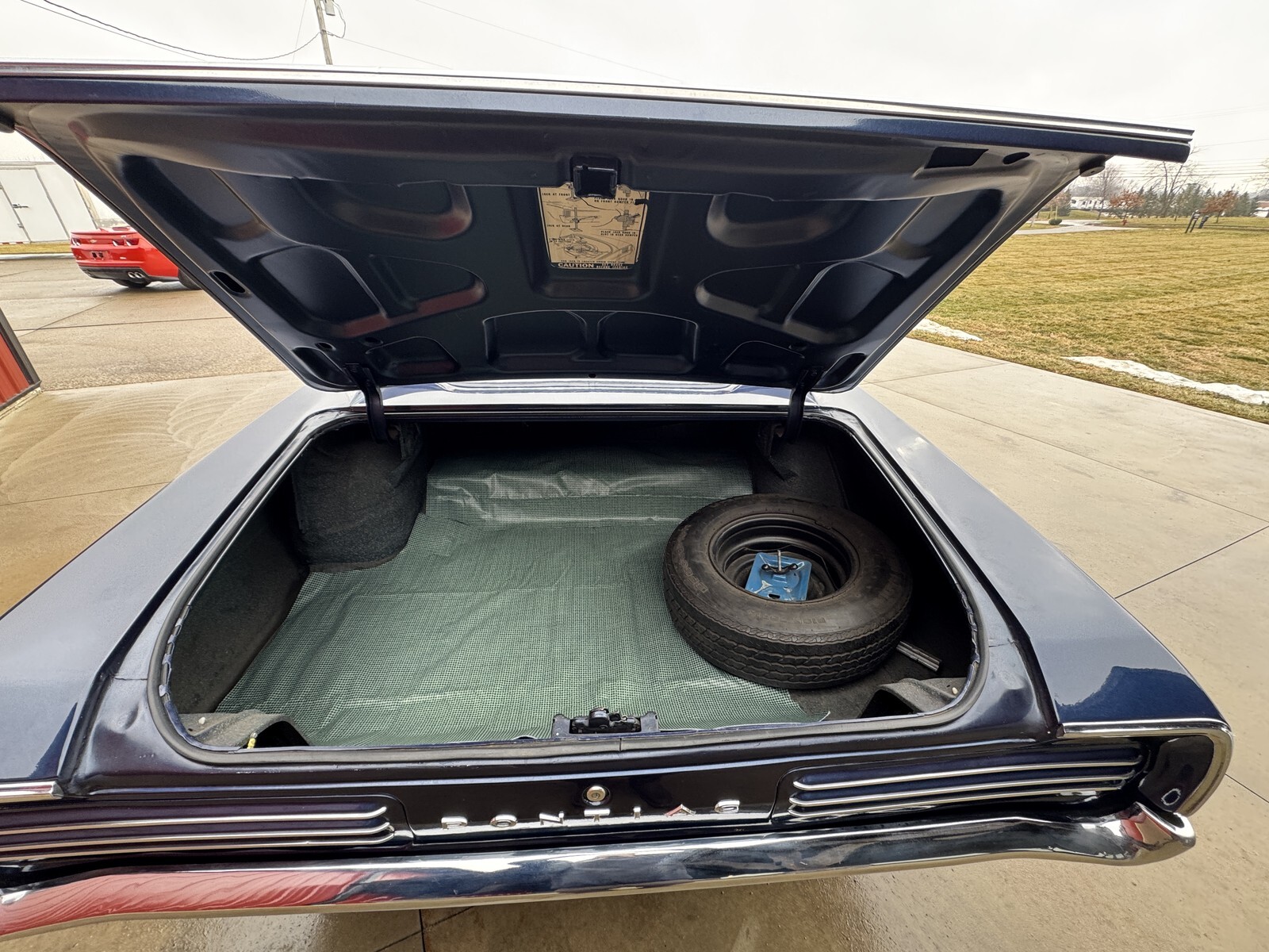 This is one clean 1966 GTO! Looking down both sides it is straight. It looks amazing in its factory color Nightwatch Blue, code E. The paint has a smooth and glossy finish. The front and rear bumpers have been rechromed. It sits on a set of Rally 1 wheelswith BFG Silverton Redline radial tires.