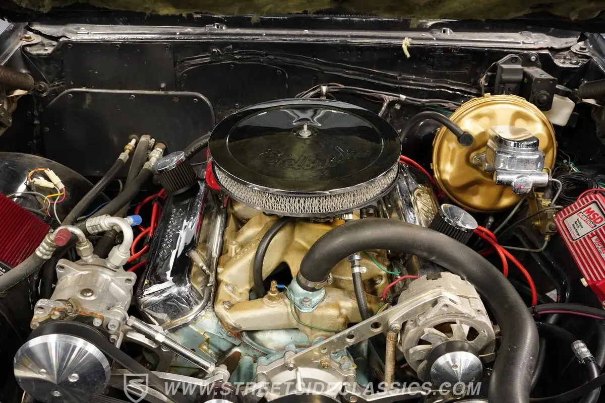 Under the hood, this GTO boasts a robust 400 V8 engine paired with a 4-speed manual transmission, delivering a smooth and engaging driving experience. The engine features performance upgrades like an Edelbrock Performer intake, Holley carburetor, and MSD ignition system. Power steering and front disc brakes ensure responsive handling, while dual exhausts with FlowMaster mufflers and long tube headers contribute to an exhilarating sound and enhanced performance. This well-tuned drivetrain promises a fun and reliable ride that captures the essence of muscle car excitement.