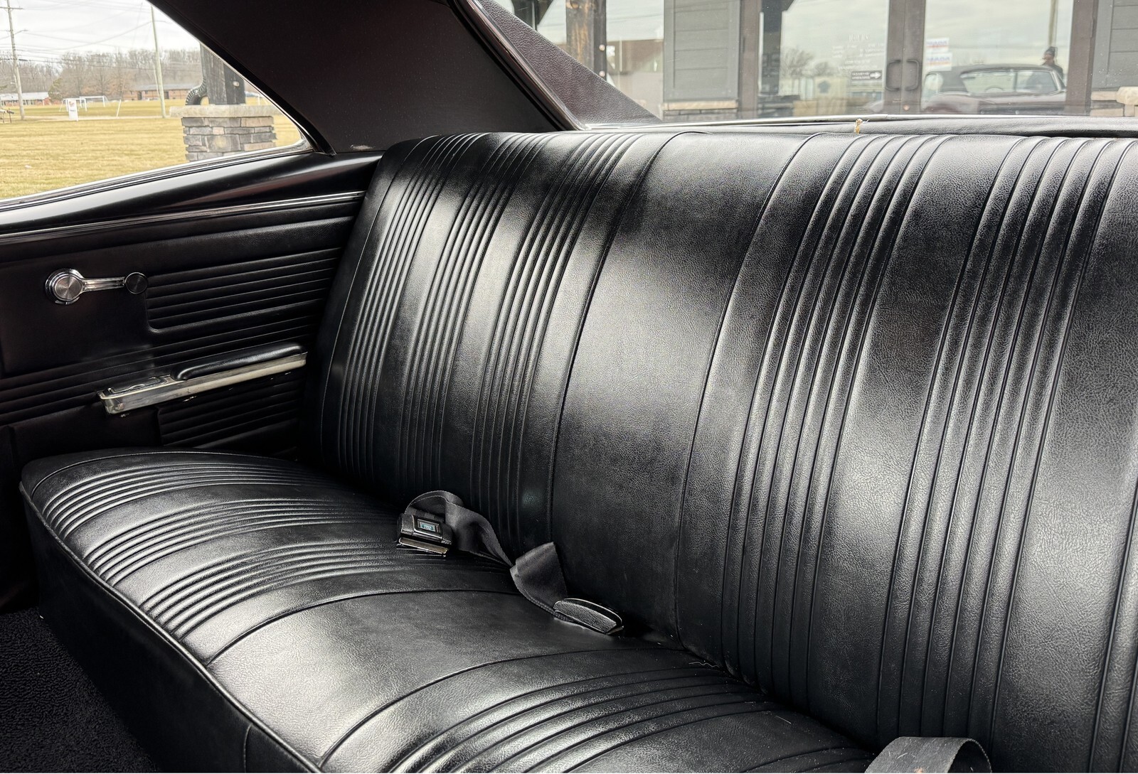The engine compartment is nicely detailed, it has a completely rebuilt 1967, 326 ci engine. It also has factory manifolds, a Harrison 4-core radiator with factory fan shroud, and a new cadmium plated brake booster with new dual master cylinder. It is nicely finished in satin black. It features the correct air cleaner, carburetor, correct spring type battery cables and battery topper for the original look.