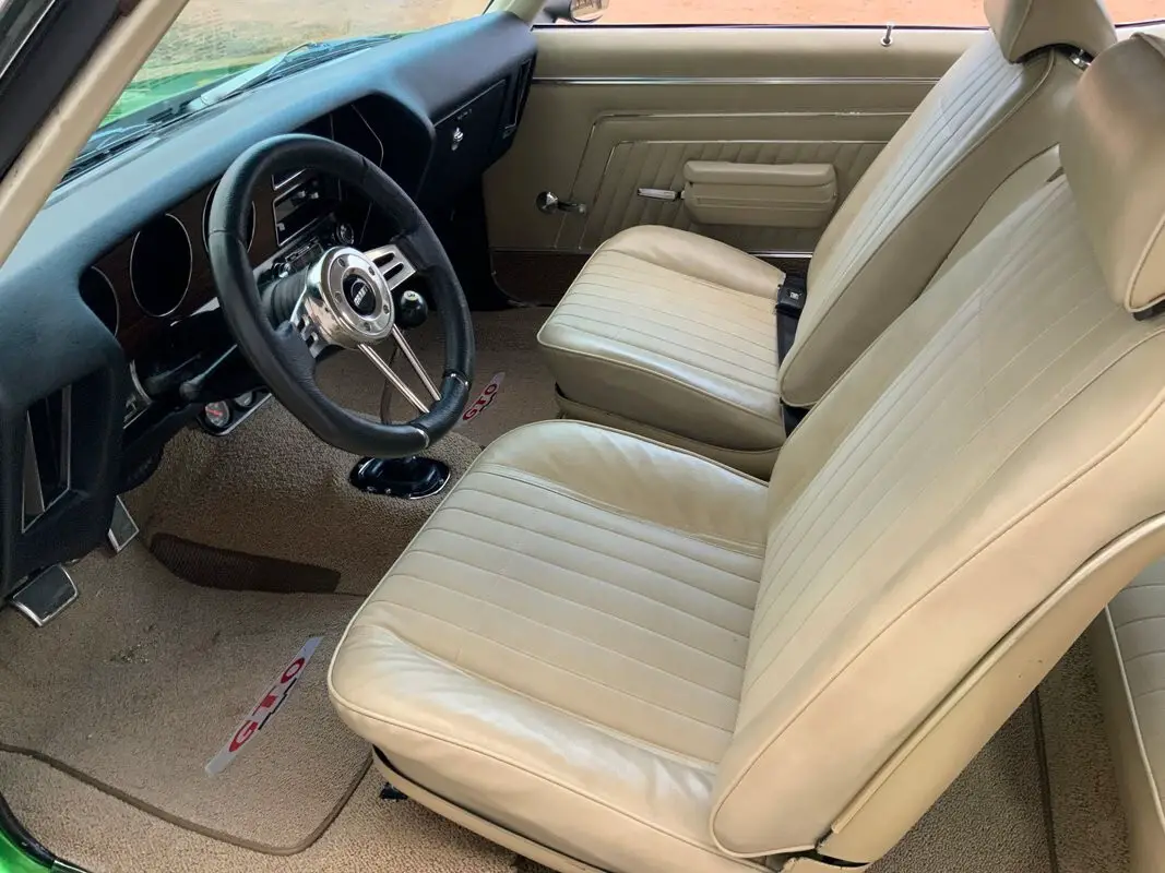 Power comes from a Pontiac 400ci V8 backed by a Muncie 4-speed manual transmission, giving this GTO the kind of engaging, hands-on driving feel enthusiasts crave. Inside, you'll find Sandalwood bucket seats, maintaining a classic muscle-era interior look that complements the car's aggressive personality.