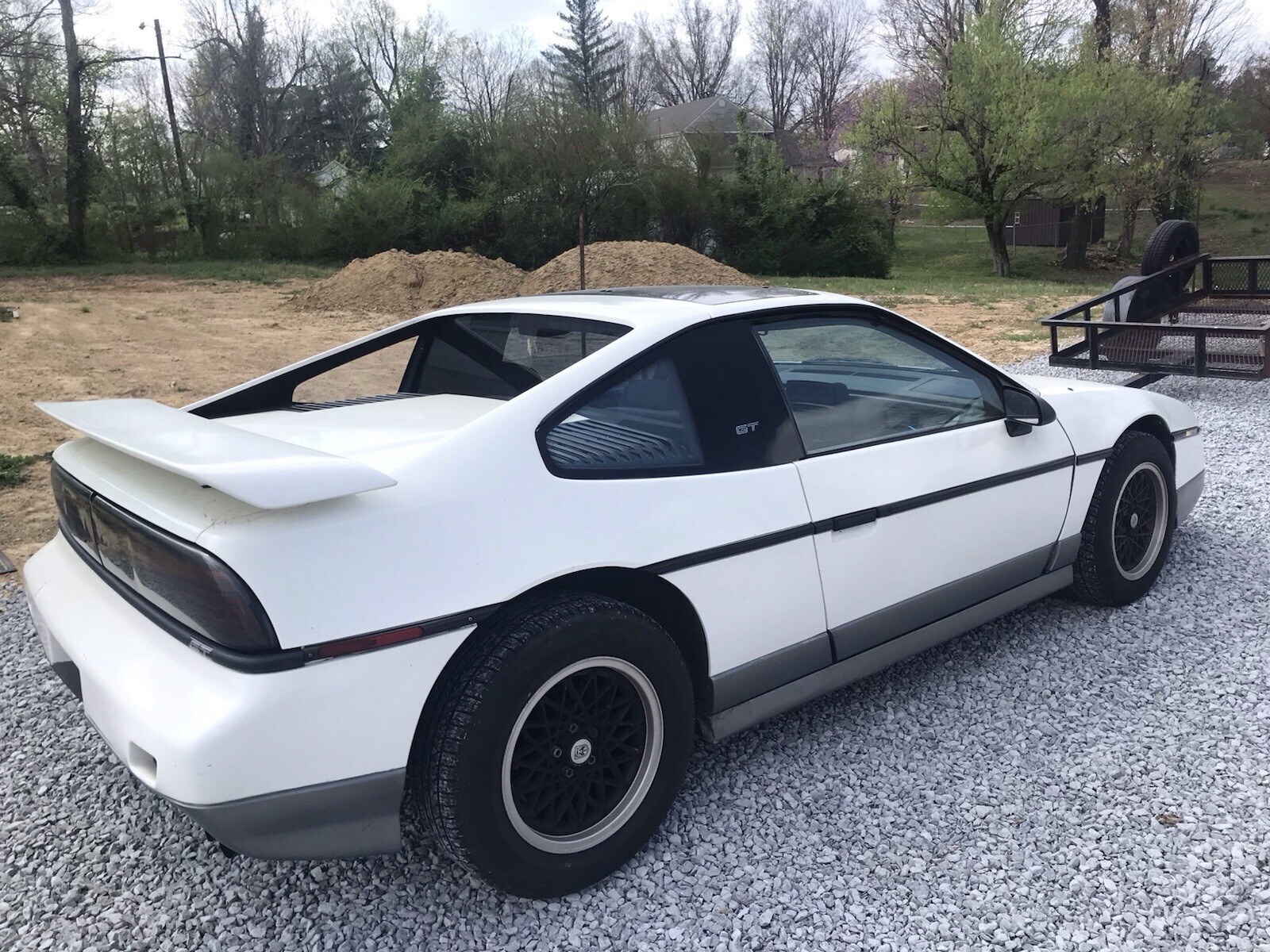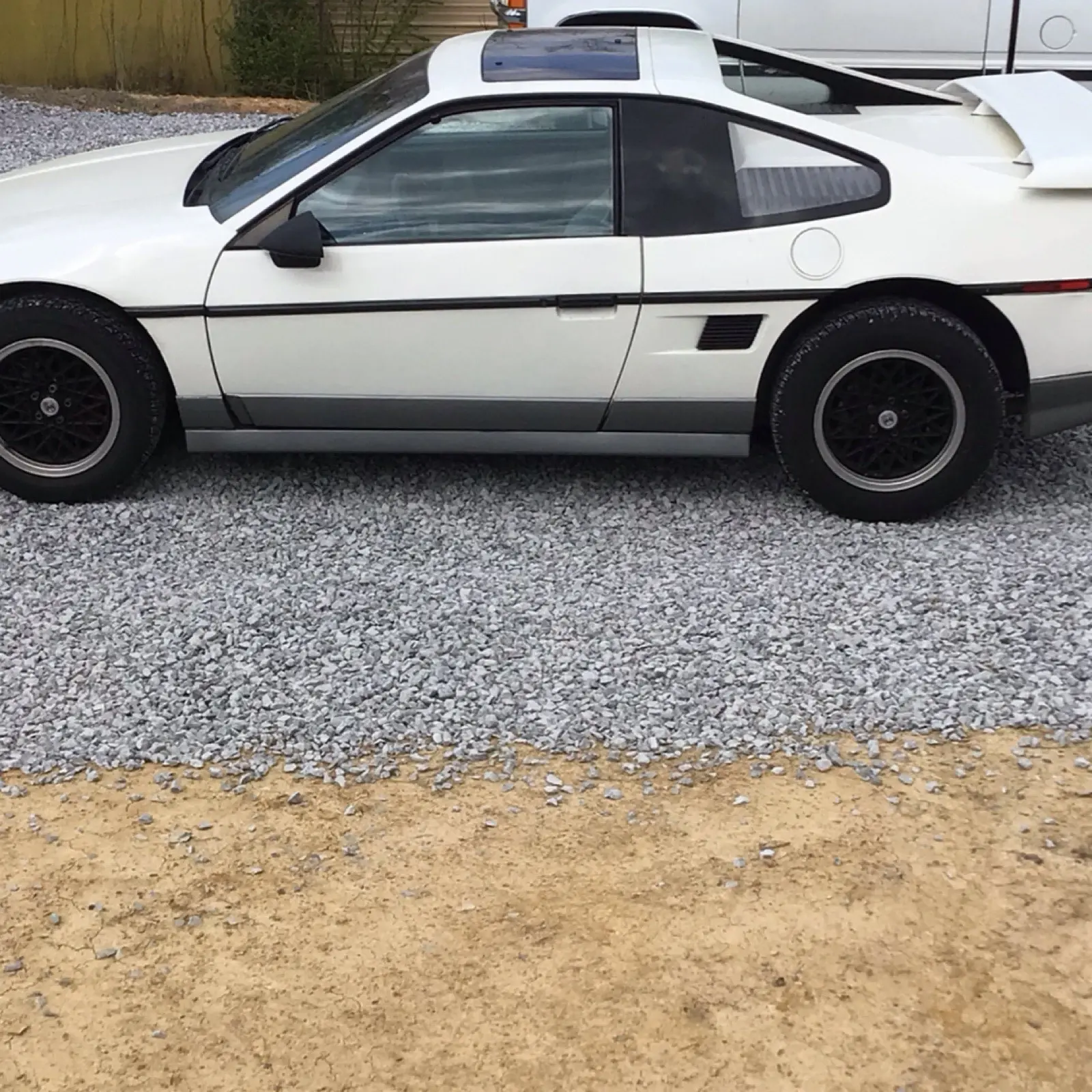 The 1986 Pontiac Fiero GT is a sleek coupe with a gray interior and white exterior. This vehicle features a 2.8L gas V6 engine, automatic transmission, and rear-wheel drive. With only 131,706 miles on the odometer, this classic car is in great condition. The Pontiac Fiero GT is a sporty and reliable option for those looking for a 1980s vintage vehicle with modern features.Forty year old car not perfect but nice for age, kept in side most all its life.