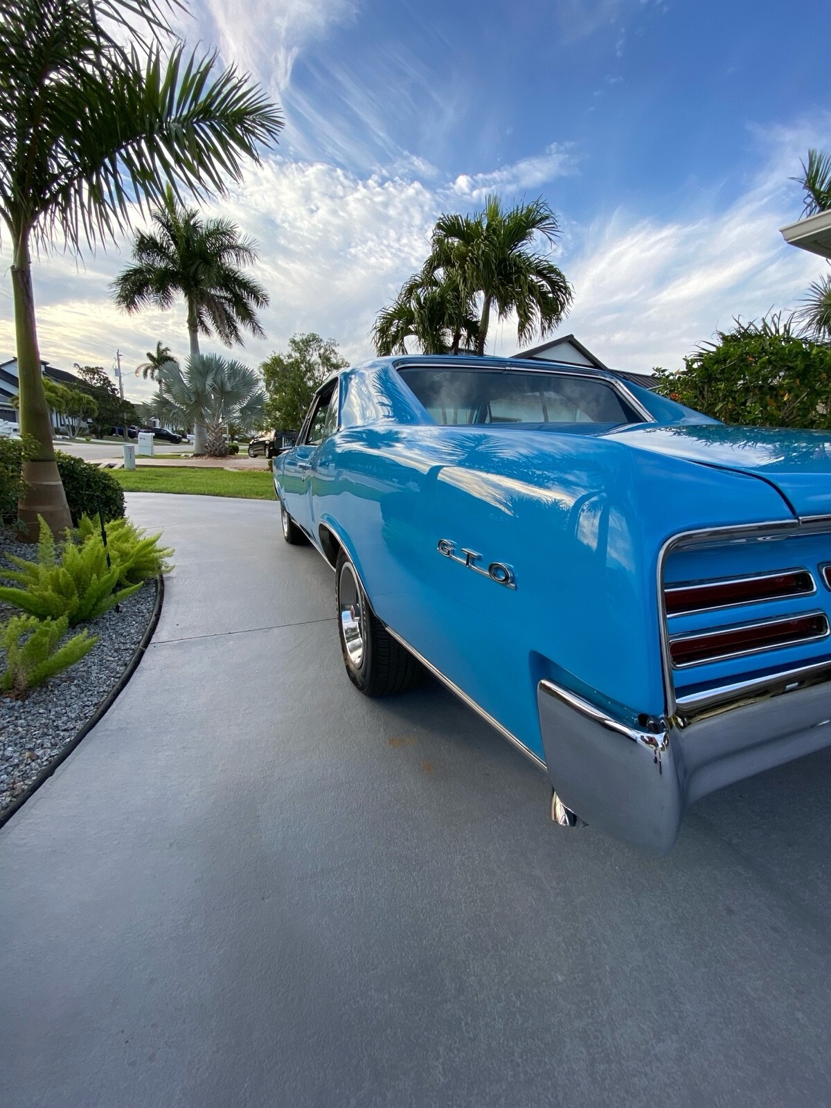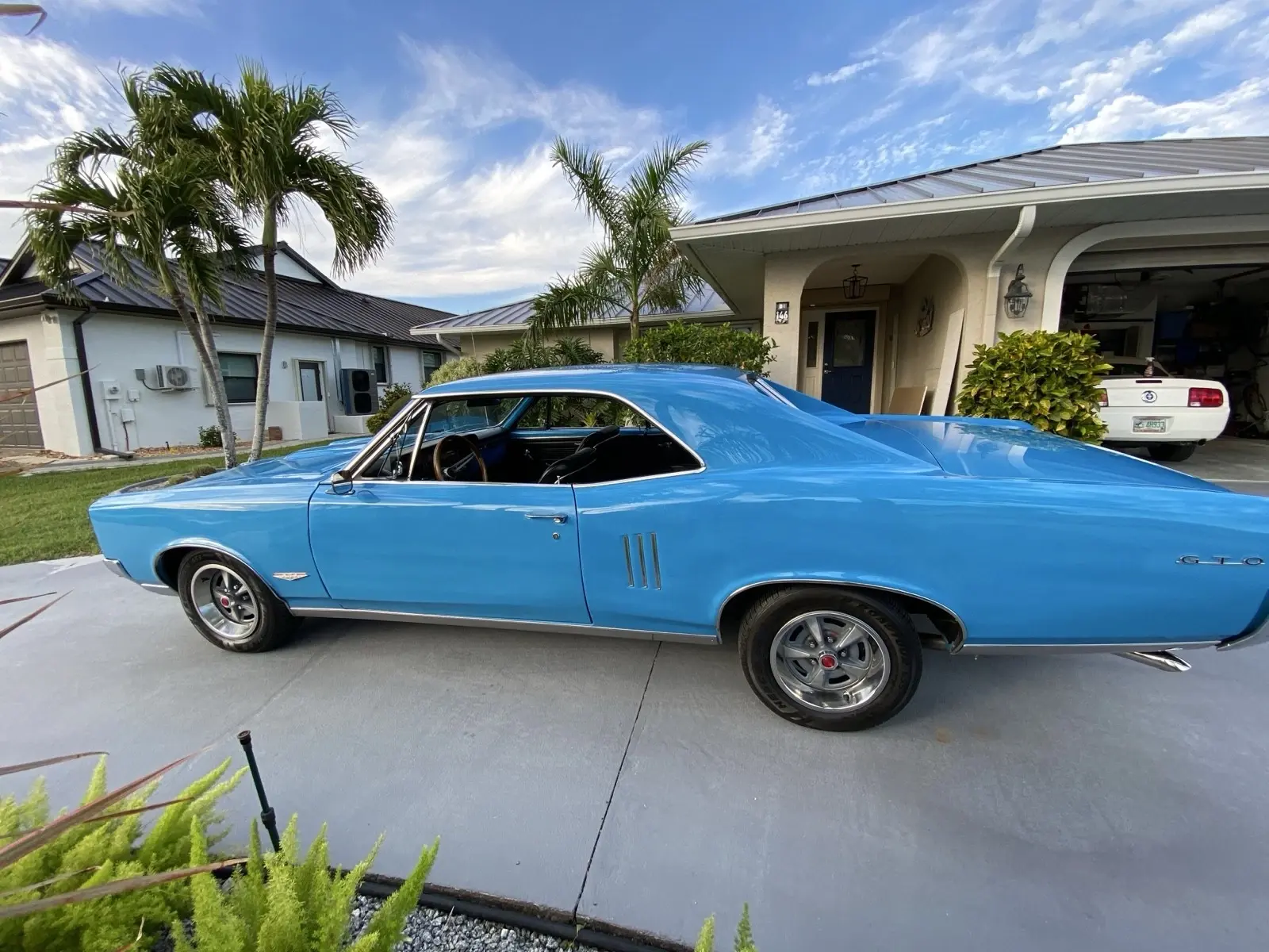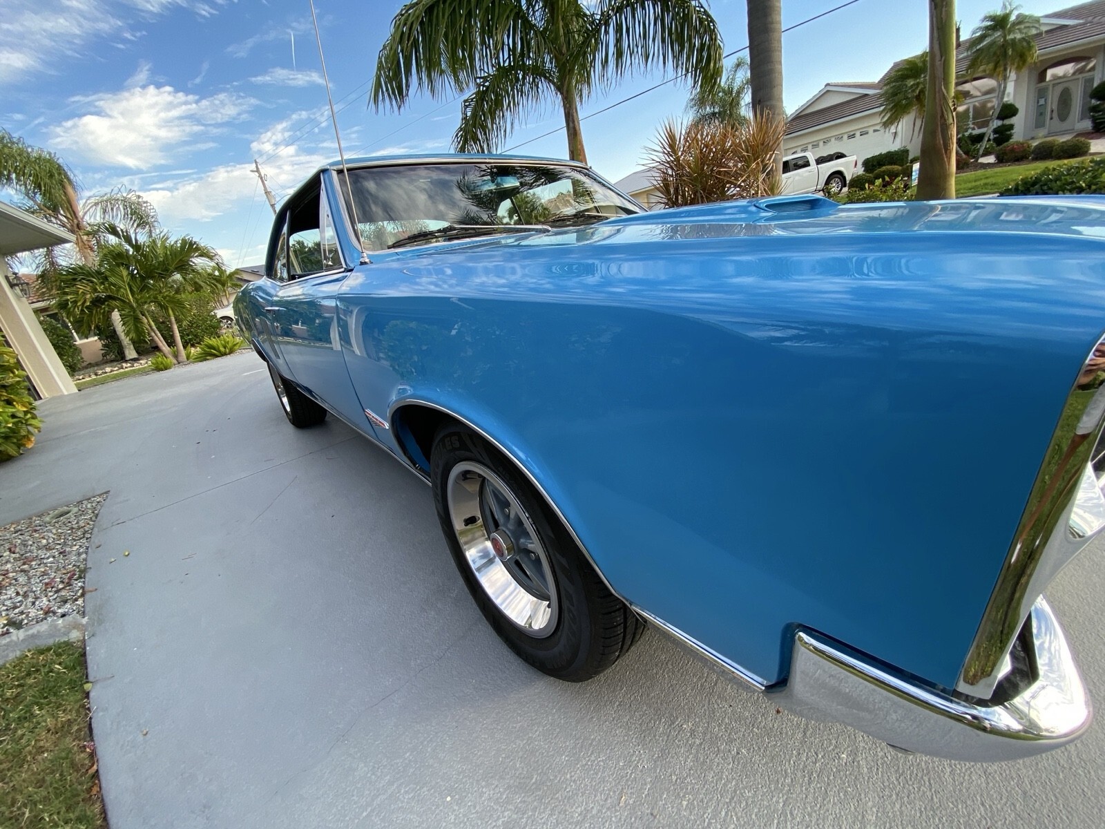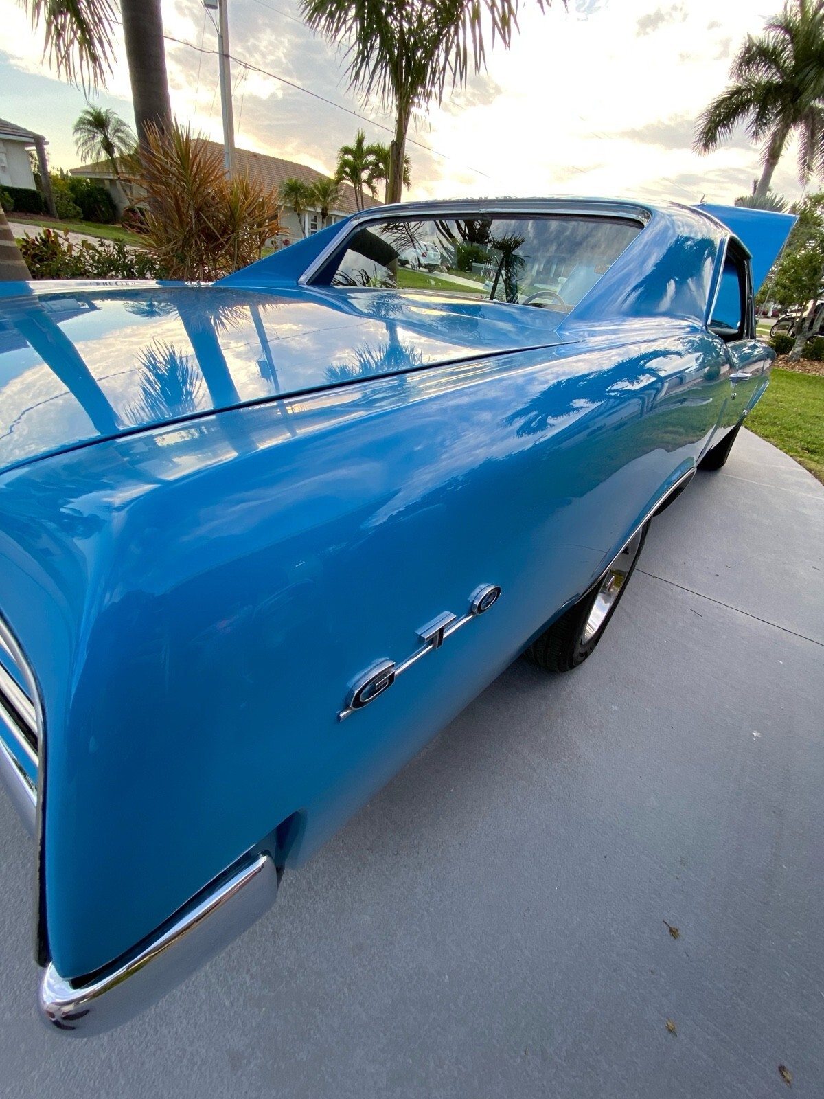 This Lemans has extensive GTO badging and various GTO parts, however it does not pretend to be a real GTO. The car retains its original Lemans chrome body side louvers, and Lemans stainless rocker moldings.