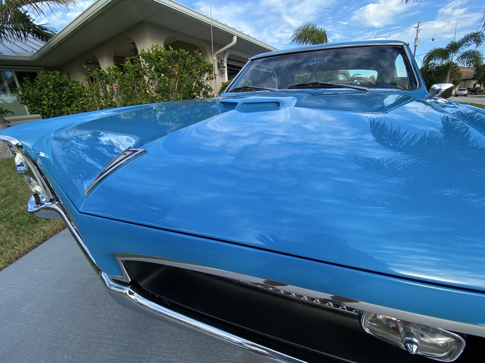 The car also has cold Vintage AC, power / tilt steering, wood steering wheel, 4-wheel slotted power disc brakes, Sunpro under dash accessory gauges, a more modern Ron Francis wiring harness, stainless steel gas tank, and stainless steel brake lines.