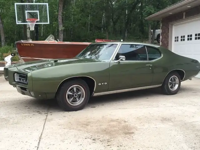 1969 Pontiac GTO Ram Air IV, PHS documented true Ram Air IV, has correct service replacement block, 4 speed, correct Verdoro green exterior with black interior, 96,750 miles, car underwent a complete nut and bolt restoration several years ago with limited use since. Drives extremely well with incredible performance. A rare opportunity to own a true Pontiac musclecar.