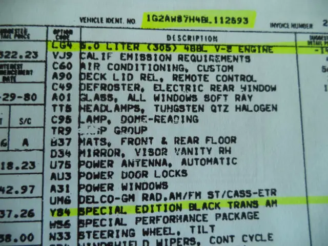 1 of 15 Y84 SE 4 speed Trans Am WS6 with a hard top. PHS Documentent
