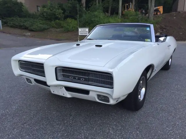 Up for auction is a stunning 1969 Pontiac GTO. Original "numbers Matching" 400ci/350hp V8 matched to the turbo Hydramatic transmission. This convertible shows very well. Exterior has been refinished in its original Cameo White. Extremely clean chassis. Runs and drives exactly as it should. Interior is very sharp along with power convertible top. Factory options include premium speaker package, hide away headlamps, Rally gauge cluster with working clock, and Disc brakes! . Recent service includes, new convertible top, and safety service. This GTO is accompanied by authentic PHS documentation.Please contact Phil about this exceptional Pontiac.860-690-9212