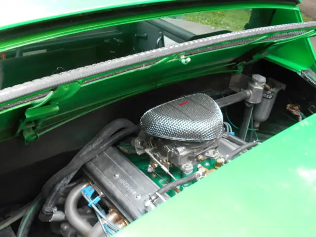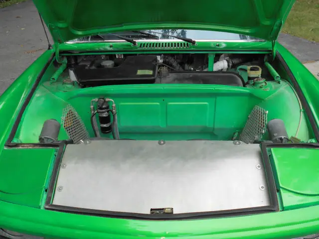 - Body: All rust was cut out (exterior body panels and notorious engine bay battery tray) and replaced with new steel, House of Kolor “Lime-Time-Pearl-Green” paint applied inside & out, 5-spoke Fuchs 911 wheels.