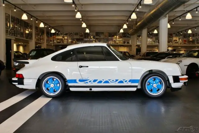 #364 of 395This is a very nice restoration by a gentleman who’s a 40-year PCA member and nationally known vintage Porsche racer. He has owned over 100 Porsches during his lifetime and knows 911s inside-out. He restored this car to keep for the remainder of his life, but then his wife spotted a vacation home by a lake and his priorities transitioned to home furnishings overnight. As you know, these mid-year cars were out of favor in the marketplace at one time, but he knew of and rectified all of their weak areas (oil-fed timing chain tensioners, etc.) due to his extensive experience owning and driving/racing them.Original miles, prior to the restoration, were indicated as approx. 48K miles. Original number-matching engine, as per COA. The original engine’s case was split and sent to Ollie’s in AZ, decked and line bored, and the engine was rebuilt with all high-end parts (Timeserts, Raceware studs, etc.). The 915 transaxle was rebuilt by a nationally known “guru” who lectures on the subject at national PCA events. New aluminum clutch pressure plate. 15” x 7” Fuchs in front, 8” in rear. New Hankook Ventus R-S3 ZR-rated tires. New Bosch H4 headlights. The car has a fresh (maybe a half dozen starts on it) AGM Die Hard battery with 800 CCA (always on a trickle charger). Rebuilt original brakes in front, rebuilt brakes from a 3.2L Carrera in rear (slightly larger). Torsion bars are 22 front and 27 rear. He incorporated a dual-fan oil cooler so the car could be driven across the Mohave Desert, in theory—to add this feature, however, he had to sacrifice the rear window defroster switch. But he felt adequate engine cooling was more important. Dual underside tow points, front and rear (in case he decided to autocross). New Bilstein shocks. All new bushings. Windshield replaced, all other glass is original. Original whale tail. Color change during the restoration (base coat/clear coat) to Grand Prix White as he admired it as an iconic racing color scheme with the blue trim. I have not noticed a single scratch or blemish in the paint to this point in time. The troublesome original exhaust/emission equipment (e.g., thermal reactors, EGR) is gone, and car now has new SSIs. He incorporated a few personal-preference mods during the restoration, including the ROW/Euro narrow rear bumpers, RS door panels, etc. Dynamat insulation installed under carpeting during restoration for sound lessening. The dash is from a later car due to deterioration of the original, but it has the larger center vent that provides better flow-through ventilation. Gauges are original, to my knowledge, but are in good, operable and aesthetic condition. New interior leather Recaro sport seats, carpet, RS-style door panels, S-steering wheel, etc. Very nice headliner with the original rear zipper feature, but he eliminated the headliner interior lights (now only has light near glove compartment). Sun visors were also replaced as the originals become very puffy and saggy through the years.Available documents related to the car will be provided via photos.The restoration was completed around Dec. 2013.