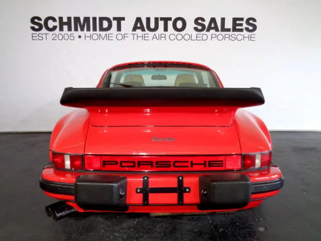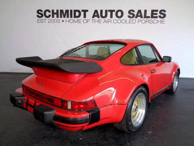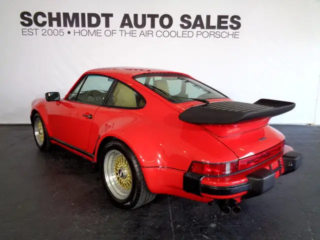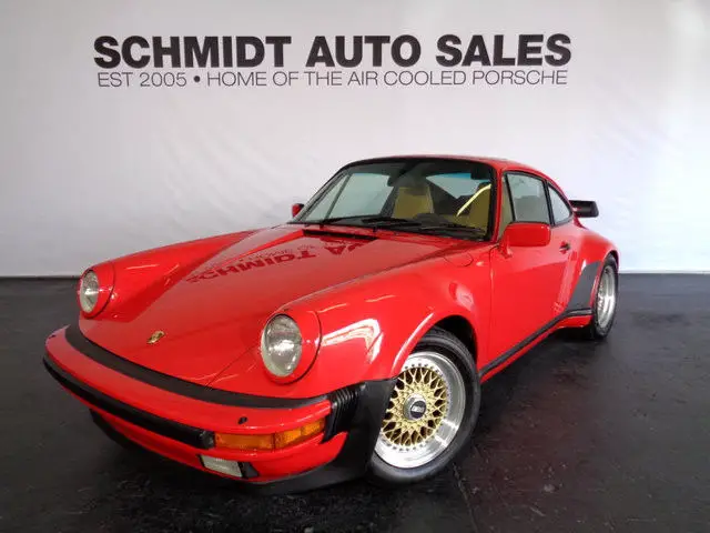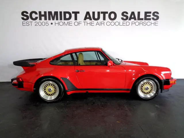 This 1986 Porsche 911 2dr 911 TURBO features a 3.3L FLAT 6 CYLINDER 6cyl Gasoline engine. The vehicle is Red with a TAN Full Leather interior. It is offered As-Is, ot covered by a warranty. - AM/FM, ull Leather Interior Surface, EHICLE TYPE: front-engine, ear-wheel-drive, +2-passenger, -door coupe ENGINE TYPE(S): normally aspirated or turbocharged and intercooled 4-in-line, luminum block and head, osch Motronic engine-control system Displacement: 151 cu in, 479 cc Power (SAE net): 147-217 bhp TRANSMISSION(S): 5-speed, -speed auto DIMENSIONS: Wheelbase: 94.5 in Length: 168.9 in Curb weight: 2850-3040 lbs FUEL ECONOMY: EPA city driving (est.): 19-20 mpg - Contact Tom Schmidt at 561-609-7510 or tomschmidt@comcast.net for more information. -