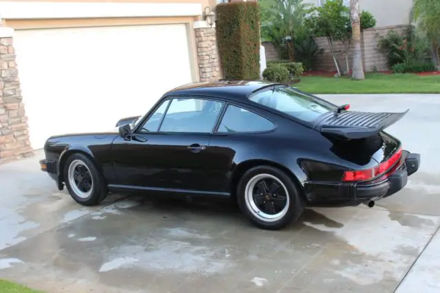 1987 Porsche 911 Black, 99,930 miles. With a factory whale tale. Excellent car. Very well sorted and reliable. Sunroof, sport seats, full leather, original radio included. No rust ever. Was a California car all its life. I have all service records. Tool kit, jack and original bag to change spare tire! Too many services to list over the years but this car has been totally and fully maintain. New tune up, catalytic converter, current smog and registration. New tires, new battery. Excellent turn key driver. I would drive it anywhere! No leaks. It shifts smooth and engine pulls very strong. Engine and transmission runs like it should. Smoke free vehicle., no funny noises etc. Drives and stops straight. Clean title.