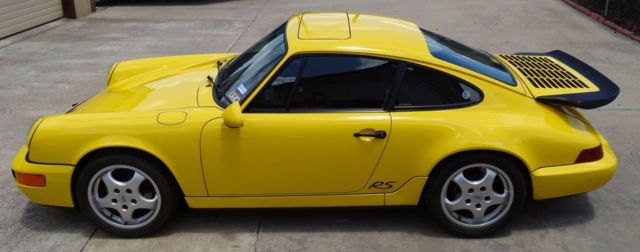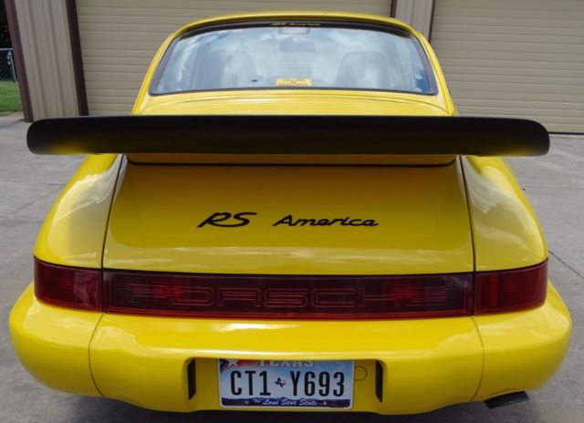 This 1993 Porsche FLY RS America up for auction comes from a distinguished collector's stable and is in superb condition. This is one (1) of Four (4) Ferrari Light Yellow RS Americas produced by Porsche in M.Y.1993. This is the ACTUAL car that was on display at the 1993 New York Autoshow (this car was specifically ordered for the show). We are the 3rd proud owners and have thoroughly enjoyed the car. This RS has been well taken care of. Having only 30,873 original miles, the car has been to many shows and rallys, but has never been "tracked", so to speak. The car has yellow belts and door handles/pulls, as well as black sport seats. Hidden in the driver rear compartment is a high-end Alpine amplifier, with an additional CD changer, mounted directly above. The car was outfitted with a clear bra approximately 2005. The car has an extensive file of documentation containing ownership and service history (original bill of sale & delivery report), AND both of the ORIGINAL window stickers issued by Porsche for the car, as well as all the original RS brochures, Owner's manuals, NY Autoshow pics etc. (see below). This is a very rare Porsche with full and complete service history and ownership history/provenance. This is a once in a lifetime opportunity to own an incredibly rare and superb representation of the legend that is the RS America. Please email or call me with any questions. Serious inquiries only, please. Good luck and happy bidding!!!