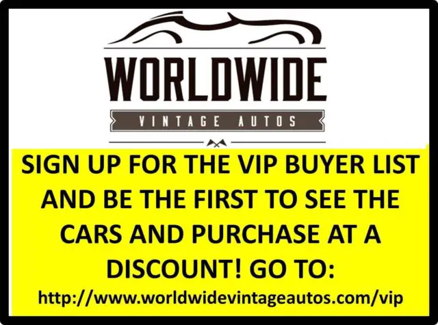 For a BUY ITNOW PRICEor to viewcurrent and upcoming inventory please go to our website Worldwide VIntage Autos.If you do not see the vehicle you want in our inventory, make sure to sign up for‘VIP UPCOMING INVENTORY’, found on theleftsideof our homepage.