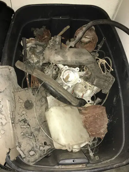 - Engine: NO engine but it does come with some engine parts found inside the car.