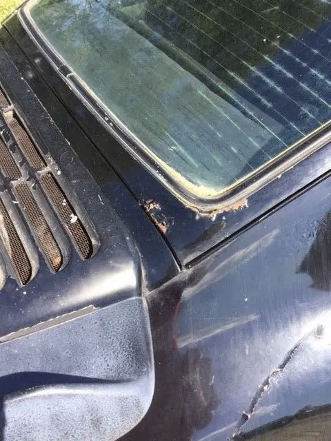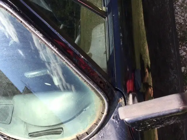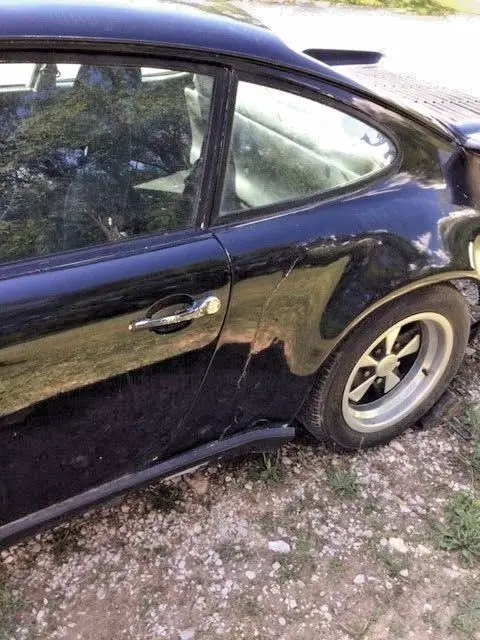 The body on this car appears good overall with nice fitting panels including the desirable whale tale and rear fender flares. There is some needed typical rust repair to the widow pillars, doors and undercarriage which would benefit from replacement floor pans. The car’s glass looks real good and can be reused. The interior has aftermarket seats and comes also with the original front seats which do have cracks that should be expected for 43 year old leather. Some of the interior has been removed. It could use a retrim if one was to perform a complete restoration. The car has the infamous Fuchs wheels that are original to the car.