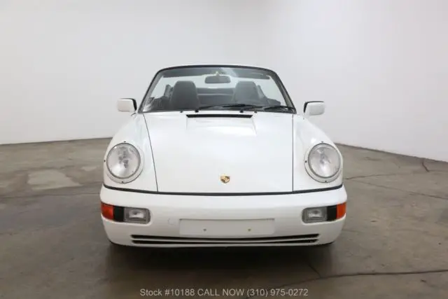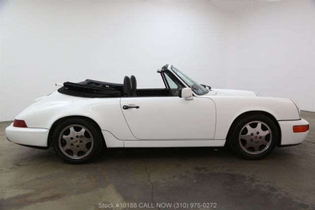 1990 Porsche 964 Cabriolet This very presentable 1990 Porsche 964 Cabriolet with 38,190 miles on the odometer is available in its original color code#908 Grand Prix White with a black interior. It is believed to be the original paint. It comes equipped with a 5-speed manual transmission, air conditioning, power windows, power steering, dual airbags, cruise control, power soft top, solid wheels and includes the spare tire. This very sharp low mileage 964 Cabriolet is an excellent weekend driver which is mechanically sound. For $44,500