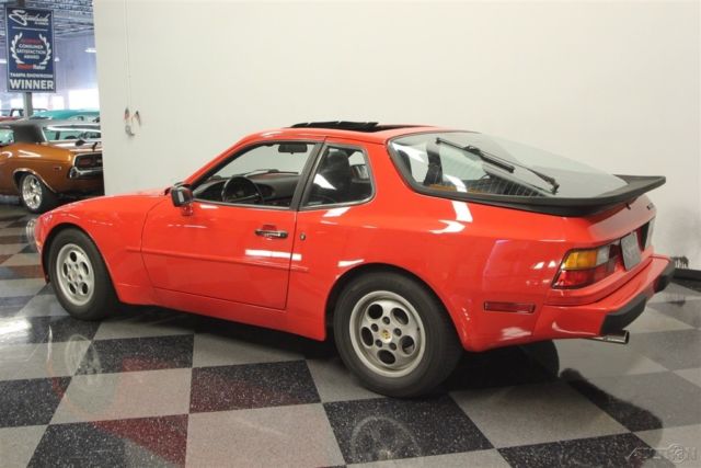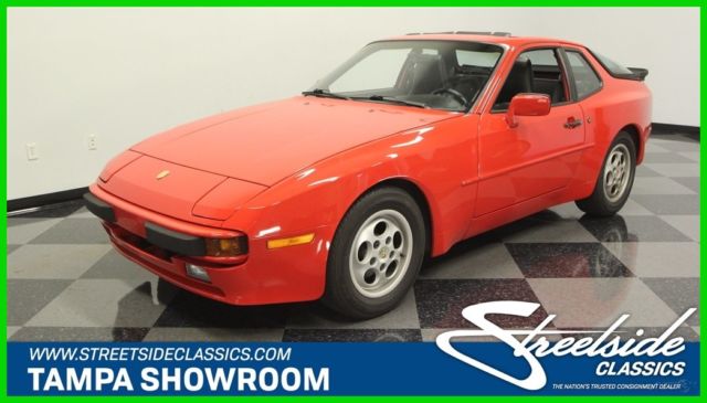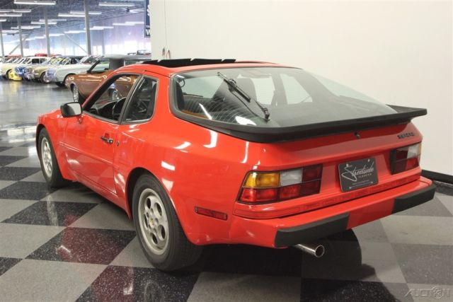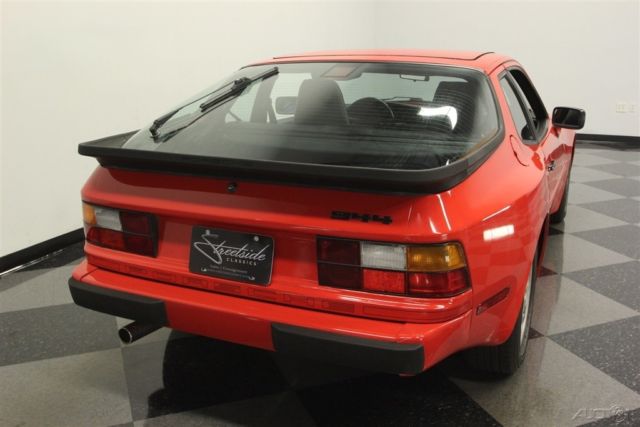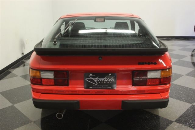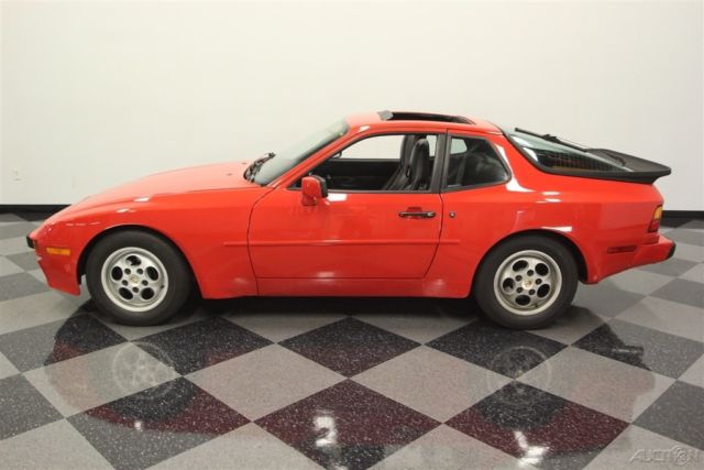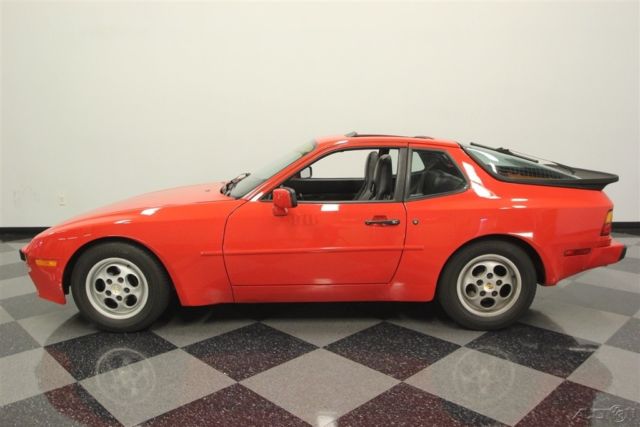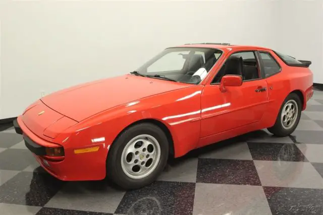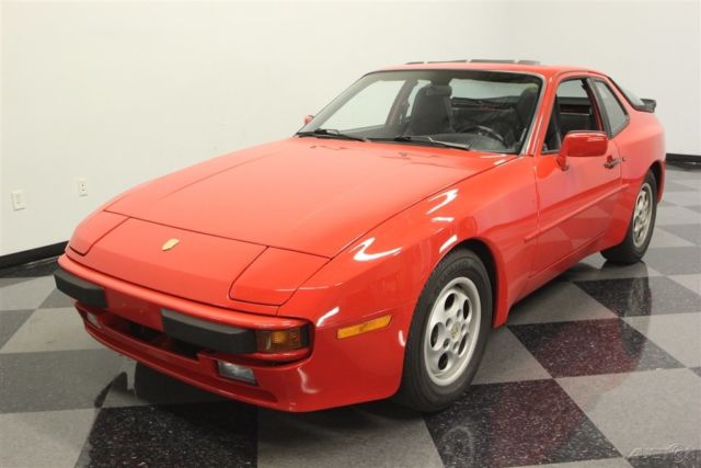 It's hard not to fall in love/lust with a red Porsche. Especially when this 944 coupe is in the perfect color, has all the best luxury features, and it offered for an unbeatable price. The 944 continues in Porsche's tradition of building serious driver's cars. But this example isn't a rough track day special. Instead, it has an outstanding finish on its factory-correct Guards Red. And if you're a Porsche person, we don't have to tell you how legendary the color is. You can even tell this is a well-maintained car by the way the black bumpers, trim, and rear panel are crisp and dark against the bright red. And those 15-inch "phone dial" alloys are practically legends on their own. The black trim on the outside is a nice preview of the interior. The black leather seats look like they were borrowed from the 911, and they are just as deep and dark as the carpeting, door panels, and dash. That's because averaging only about 2,000 miles annually also means little time for fade and wear. The masters at Porsche make for an ideal driving environment where the steering wheel is grippy, the gauges are crisp, and the stick shift is in the perfect position to rest your hand. But more than just a supreme driving machine, it's loaded with all the right features. This includes power windows, power driver's seat, and the original Blaupunkt AM/FM cassette stereo. And of course, this 944 comes with its signature feature, the large removable sunroof that truly opens the coupe up to the world. Plus, with R134a air conditioning, you do this and stay cool all summer long. The tidy presentation of the engine bay continues the feeling that this has been a well-respected coupe. The 2.5-liter inline-four is all about providing balanced performance. Canted over at an angle for a lower center of gravity, it makes big torque at low speeds. The rear-mounted five-speed means that the car has almost ideal 50/50 weight distribution. Also, the manual transmission also means you get to be in control of this lightweight sports machine. Add in features like four-wheel disc brakes, power steering, grippy Kumho tires, and Porsche's legendary engineering prowess for the fully independent sport suspension, and you realize this is blast to drive anytime you can find an open road. Complete with owner's manual, this is a complete and bold Porsche that is well within reach. Call today!!!